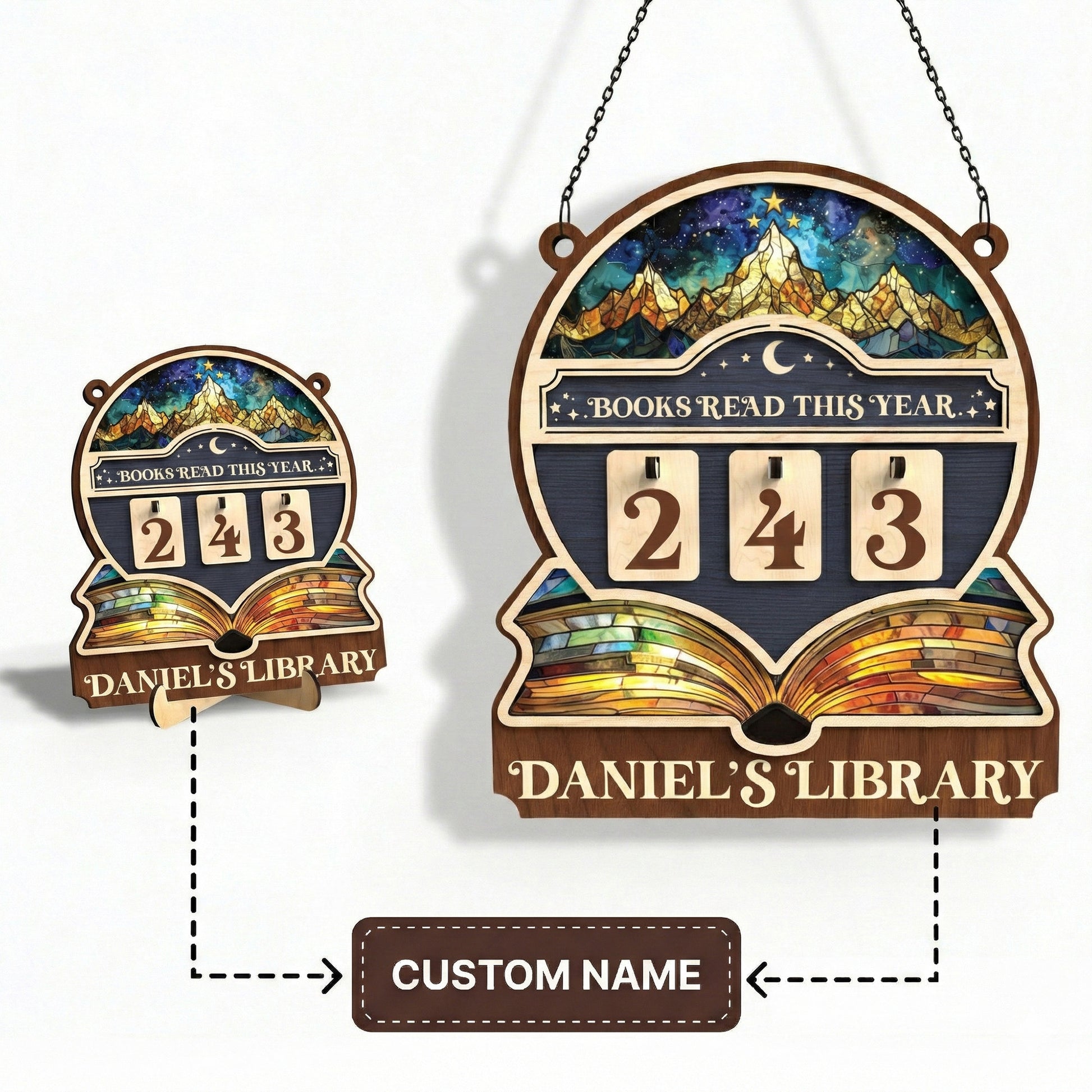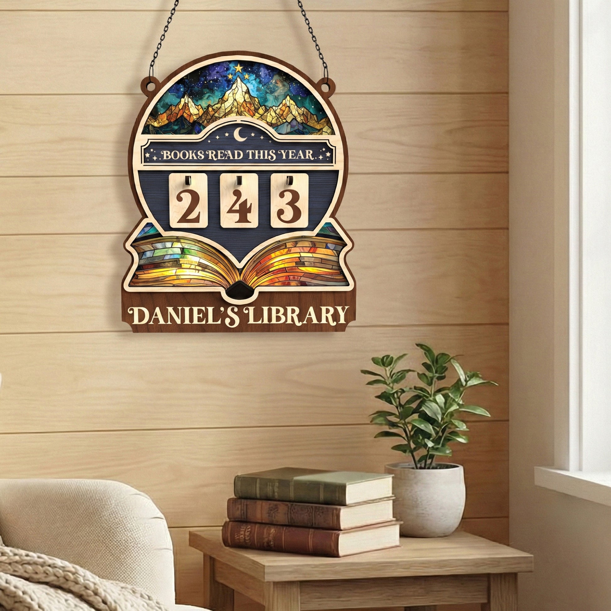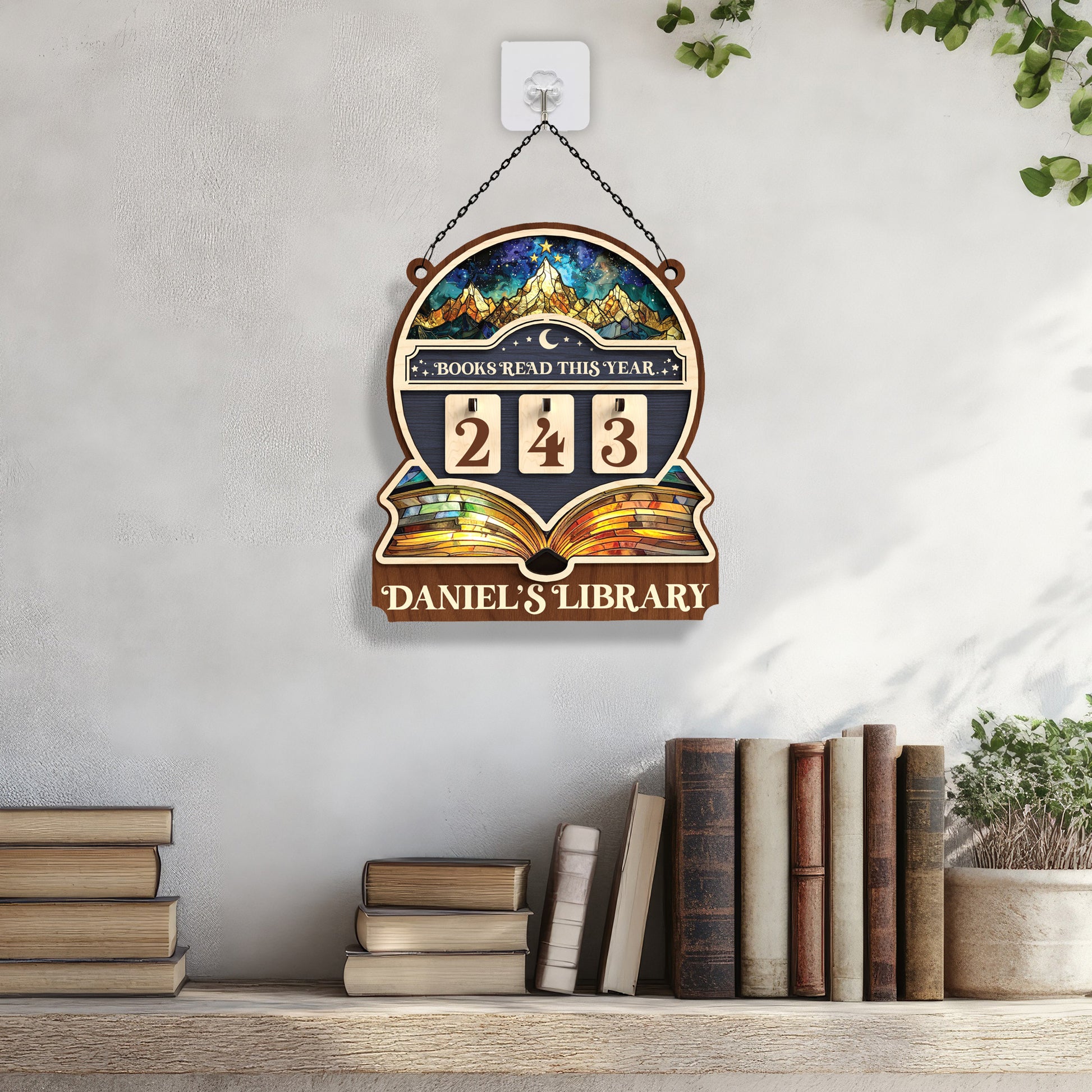 Personalized Books Tracker Sign, Starry Night Landscape, Colorful Wall Art