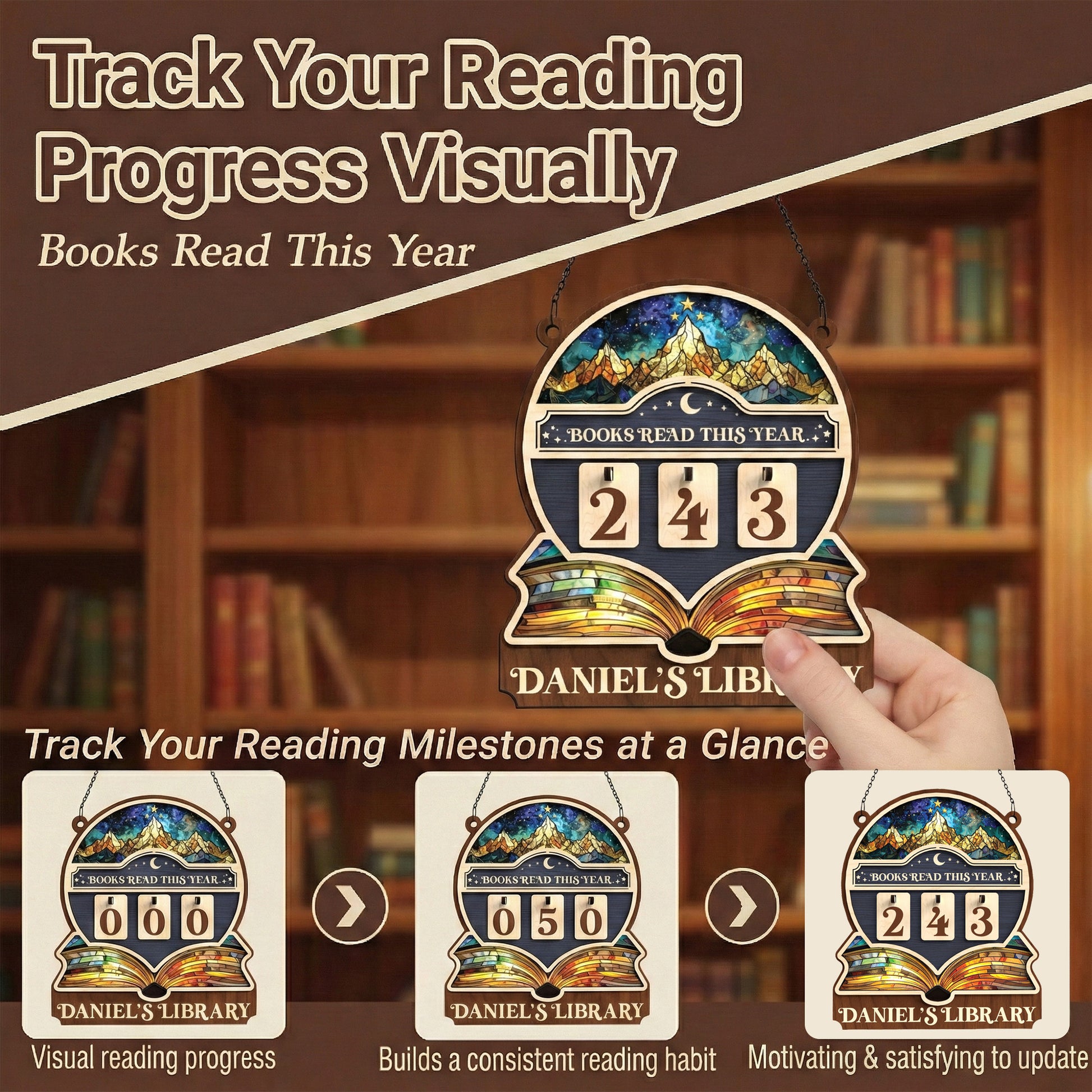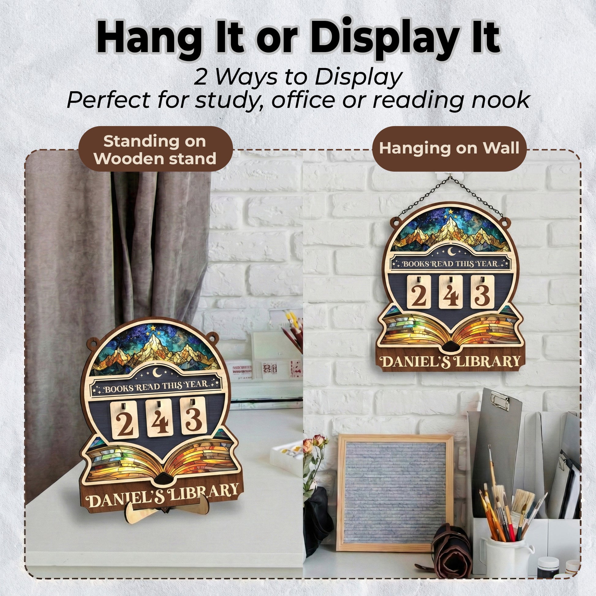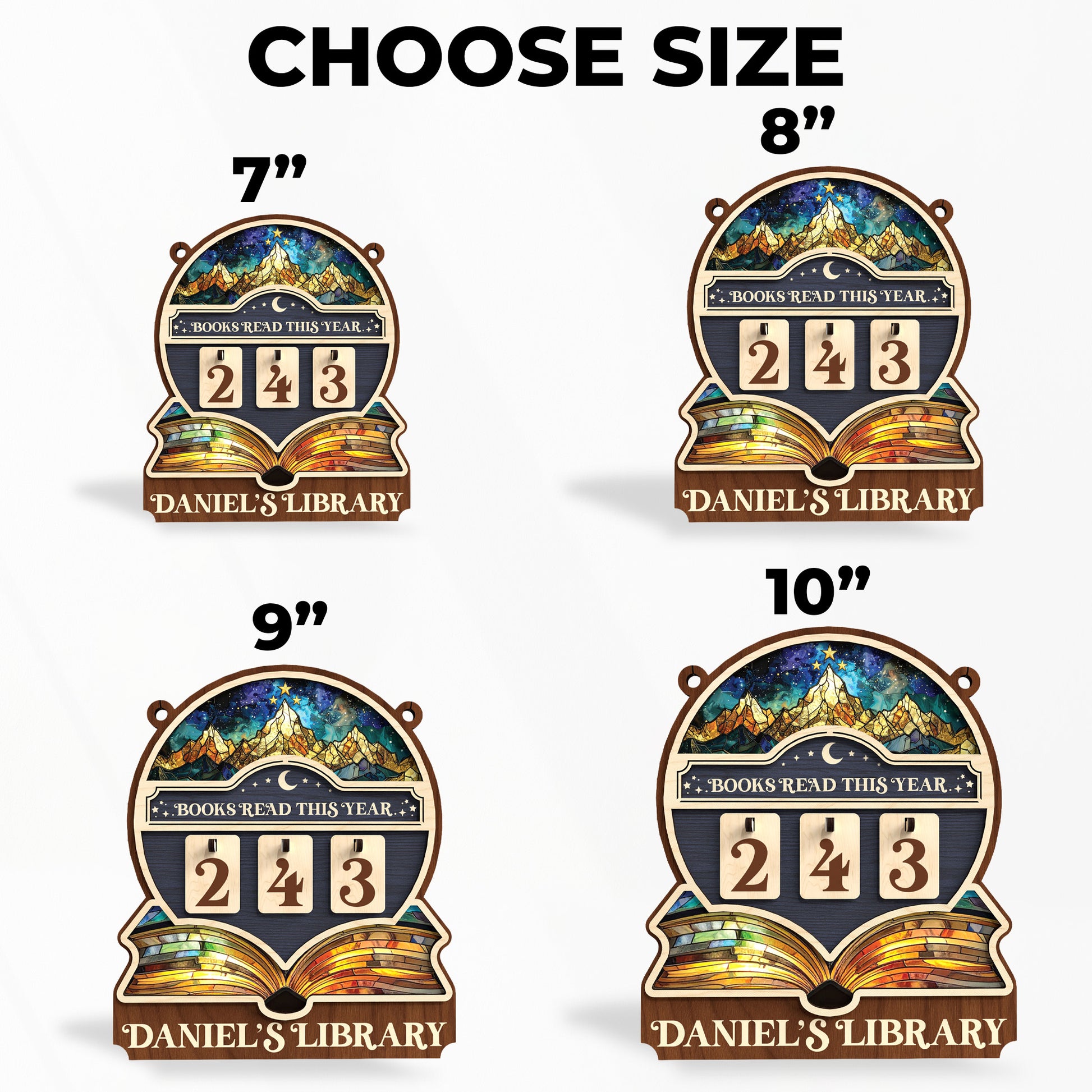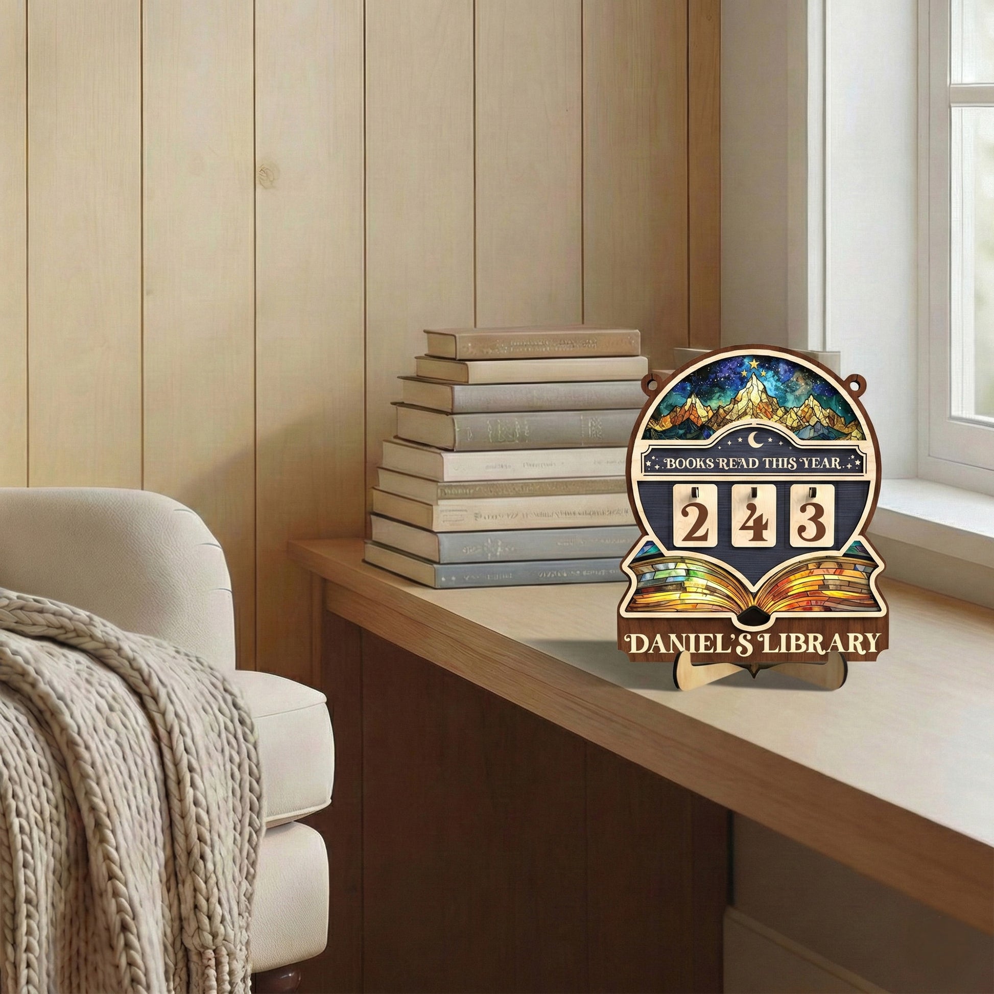 Personalized Books Tracker Sign, Starry Night Landscape, Colorful Wall Art