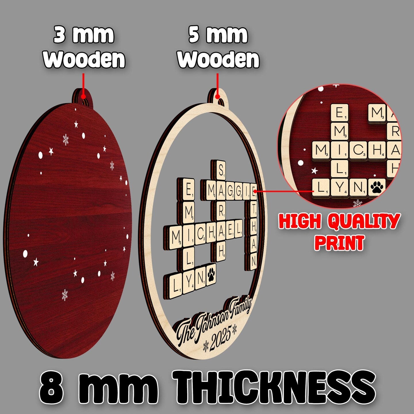 - Layered & Custom Details: Crafted with a layered 3D design, featuring a durable 3mm wood base and a 5mm wood top layer. The total thickness is 8mm, ensuring a high-quality, lasting ornament. The letters and background are a high-quality print, designed to be vibrant and fade-resistant.