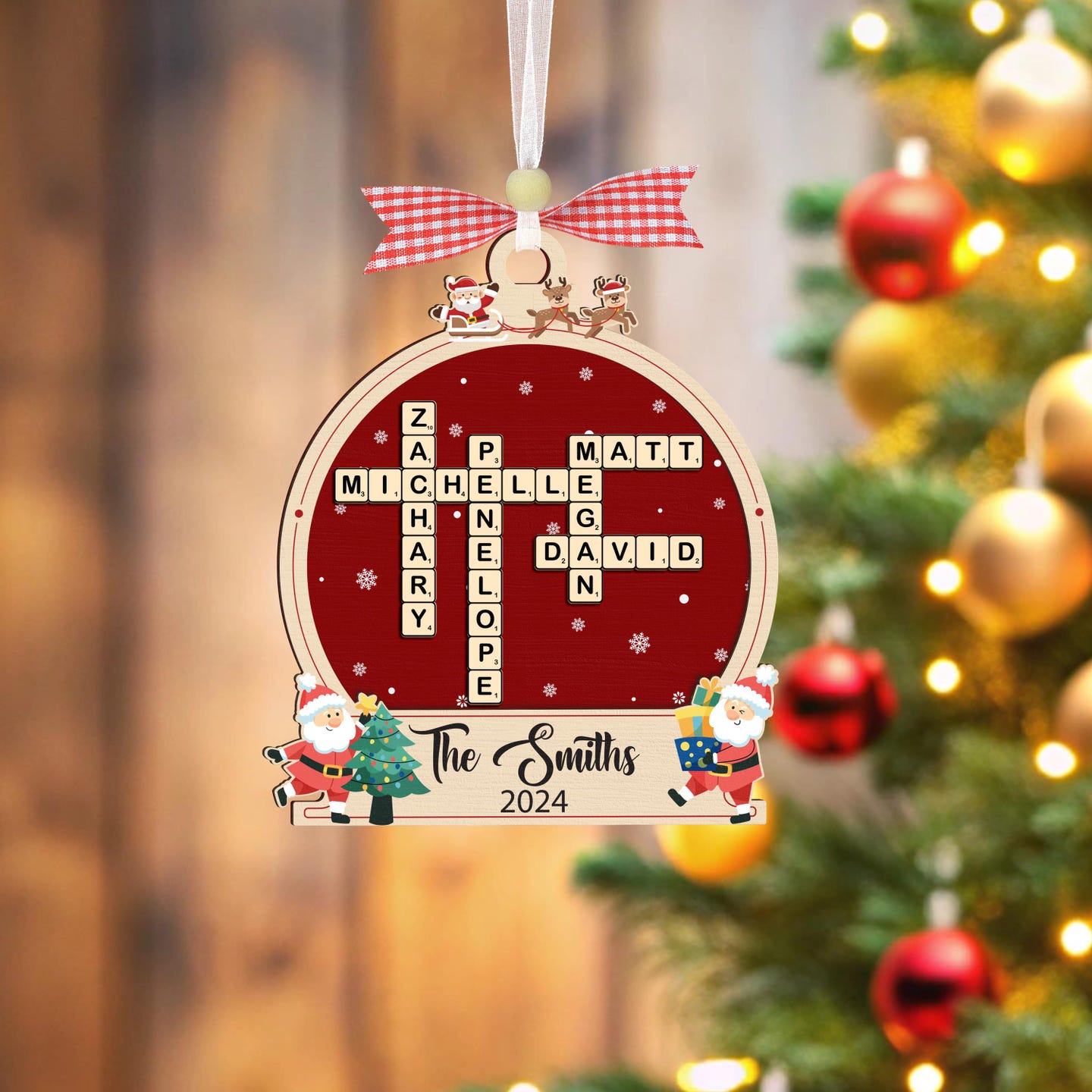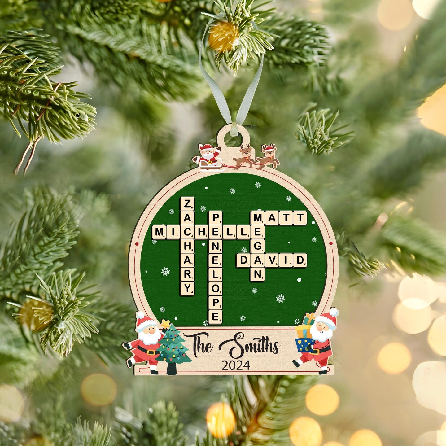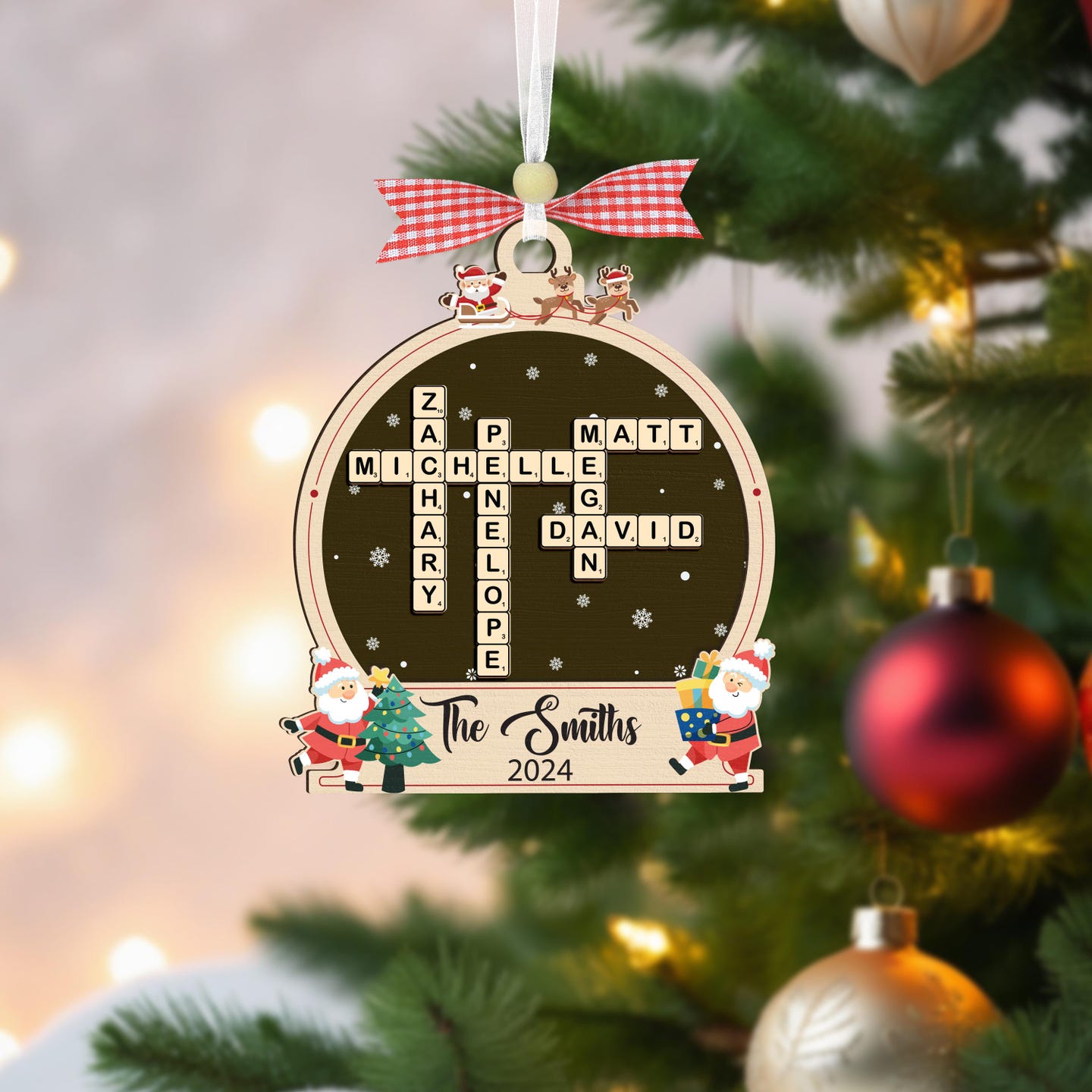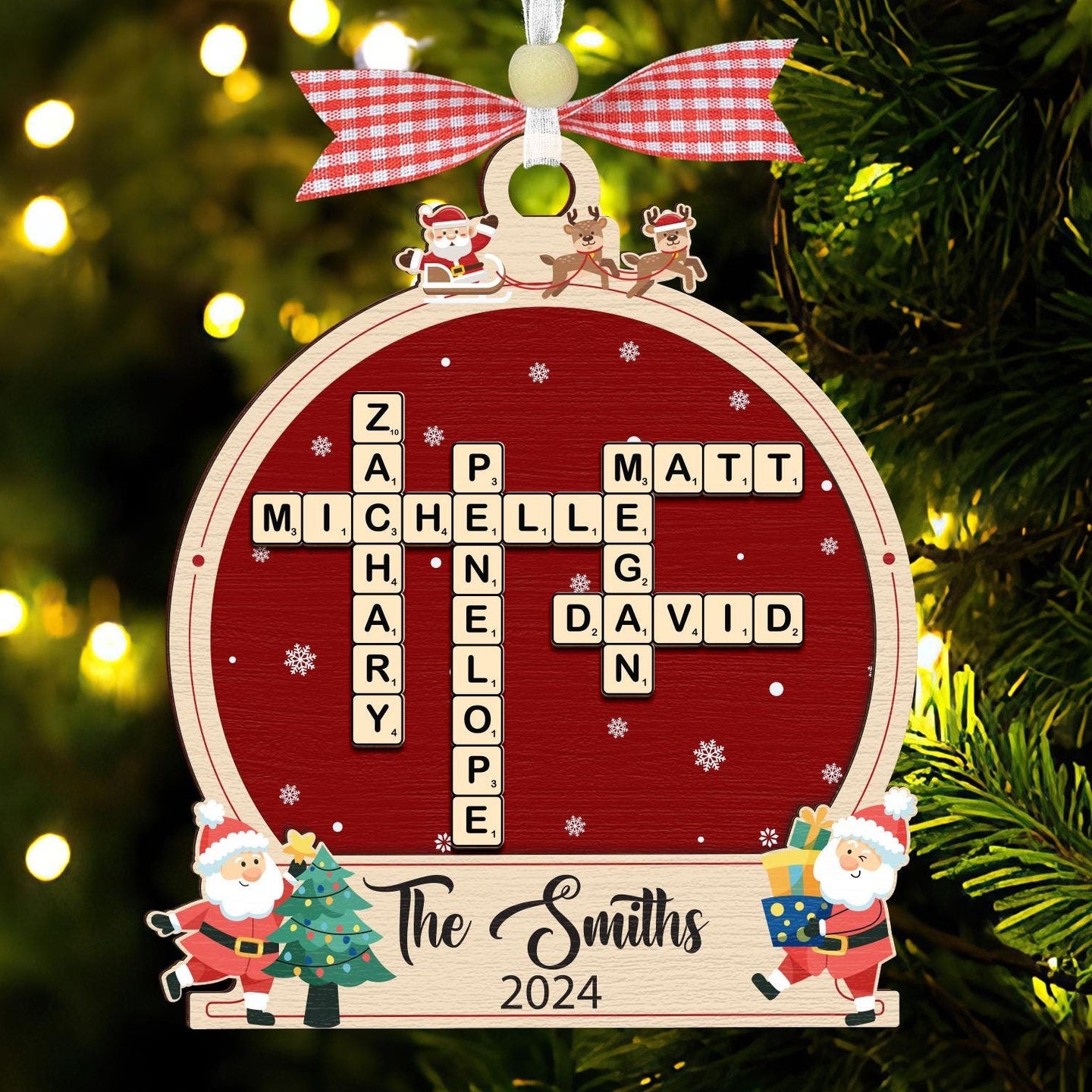 Family Crossword Ornament,Family Ornament,Scrabble Personalized Christmas Ornament,Family Names Puzzle,Family Christmas Gift,Family Keepsake