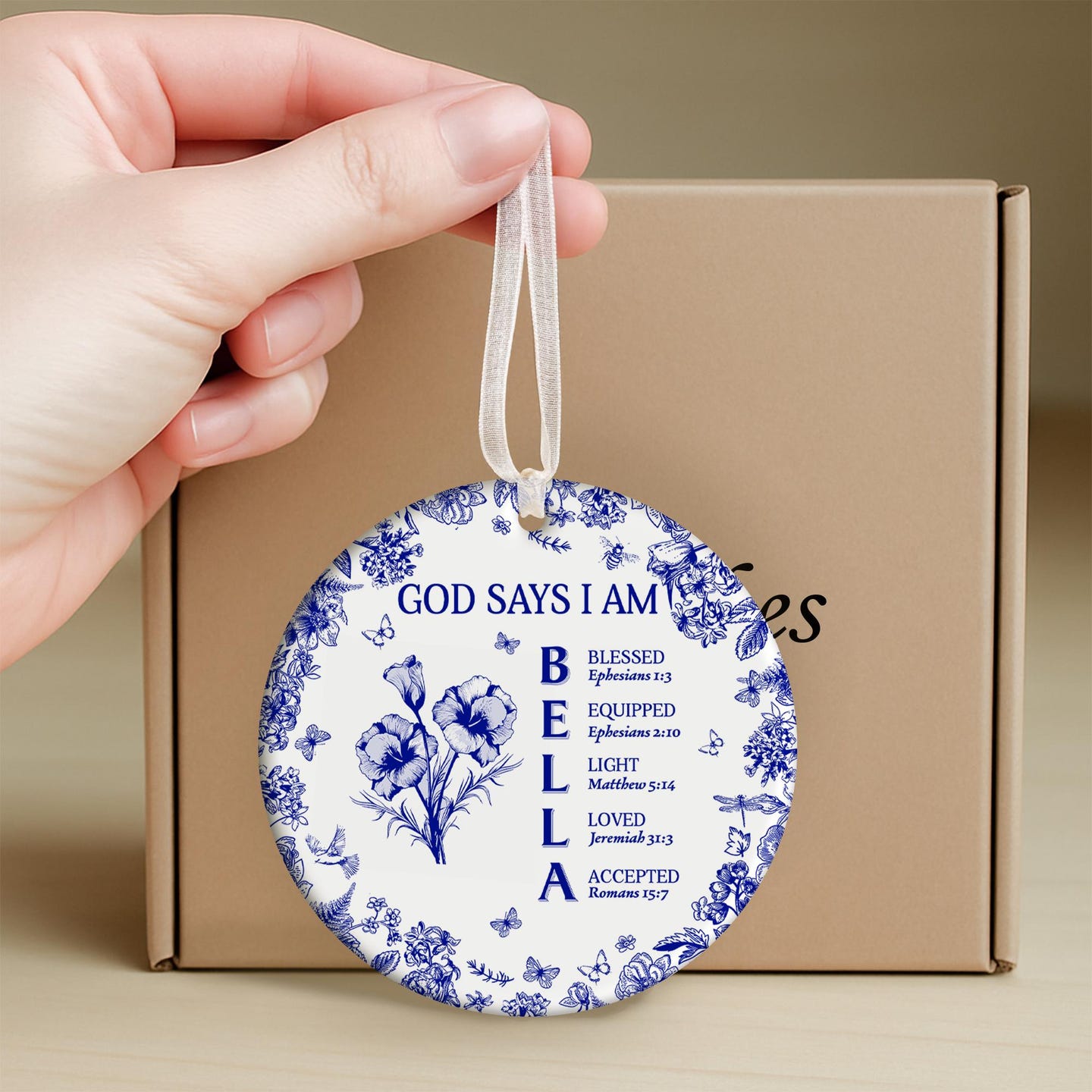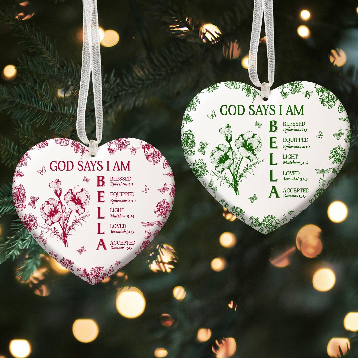 - Each ornament is thoughtfully personalized with a name, where every single letter is beautifully matched with an inspiring Bible verse. This makes your piece completely unique. Beyond its beauty as a decoration, it serves as a spiritual keepsake, gently reminding you each day of God’s unchanging love, His promises, and the strength you can find in His Word.