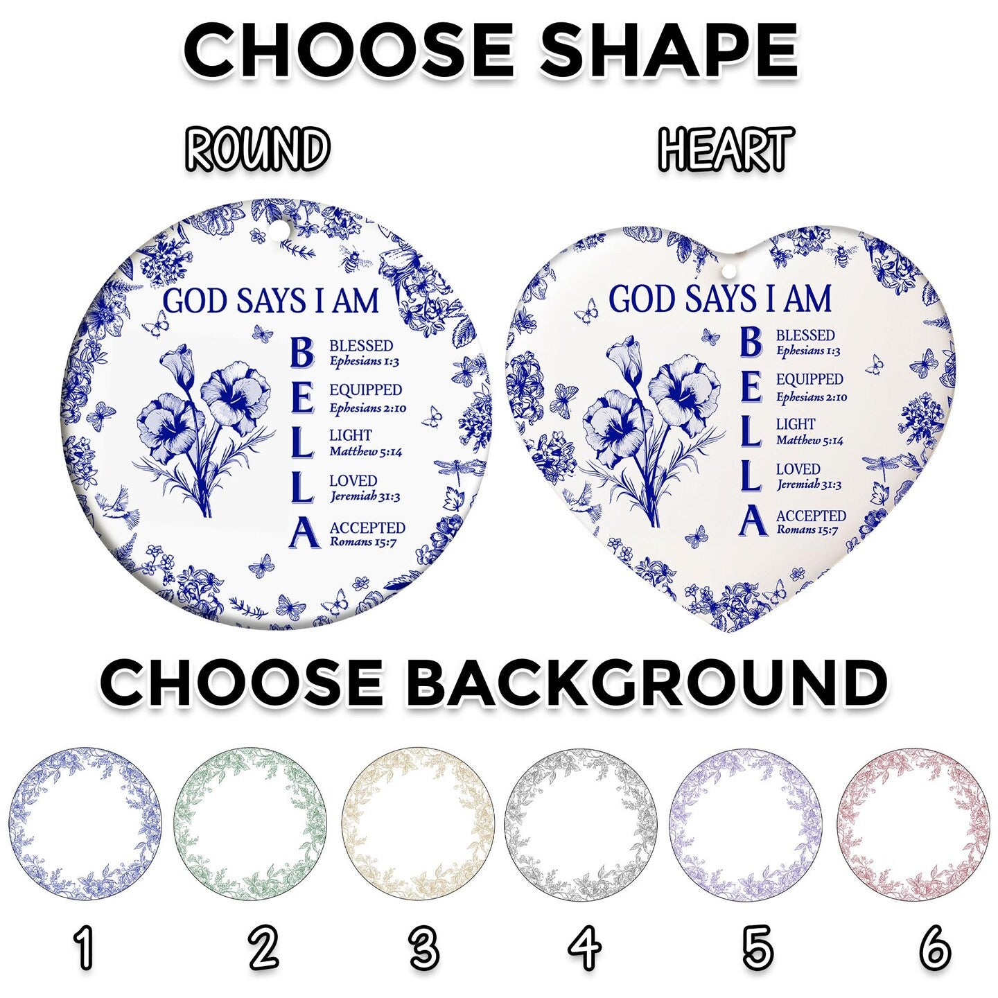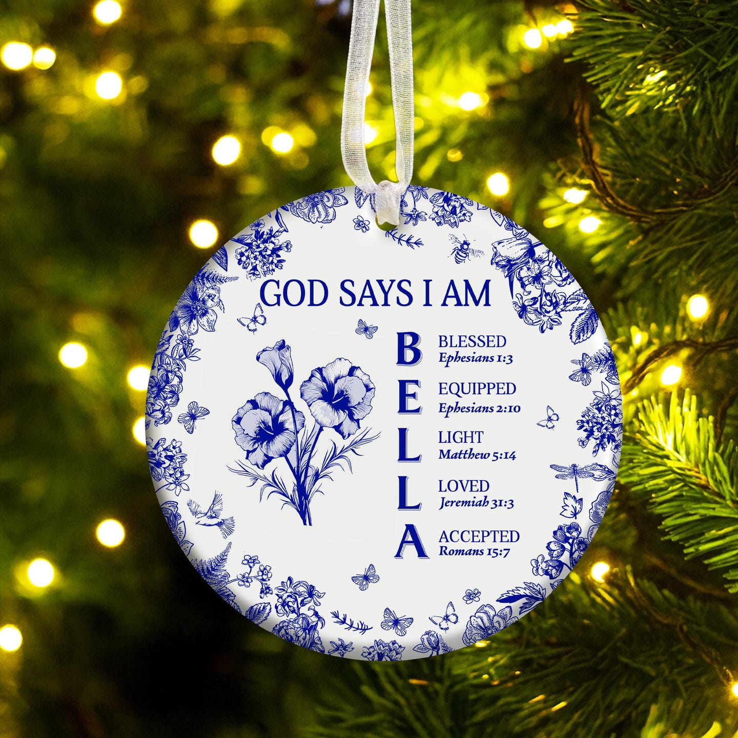 God Says I Am Ornament,Custom Bible Verse Toile De Jouy Christmas Decoration,Name With Bible Verses,Christian Gift,Faith Gift,Religious