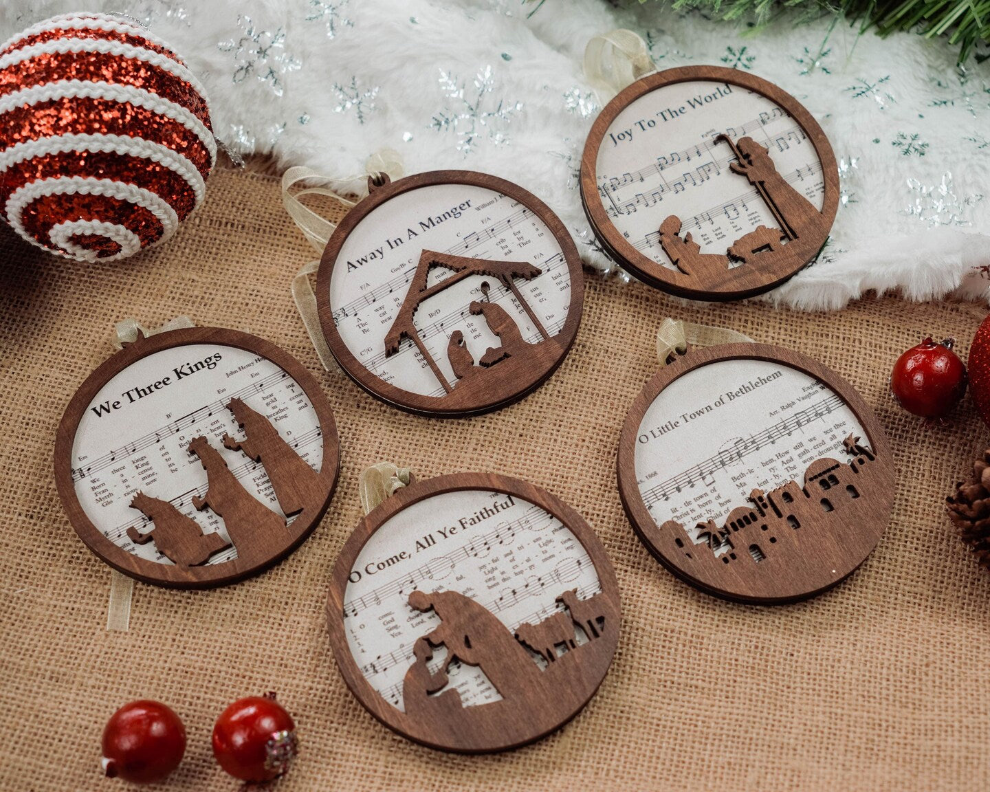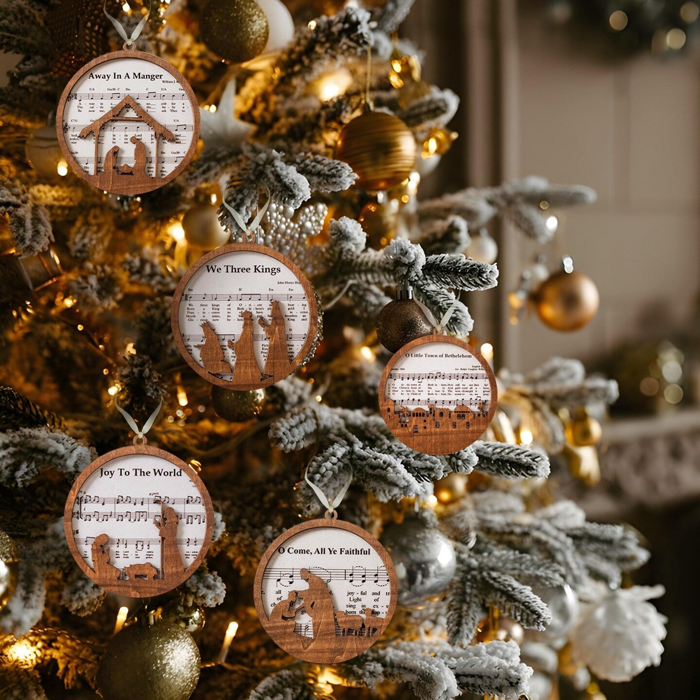 Set 5 Pieces Music Sheet Nativity Ornament, Meaningful Christmas Christian Gift, Nativity Christmas Ornament 2024, Holiday Gift Religious