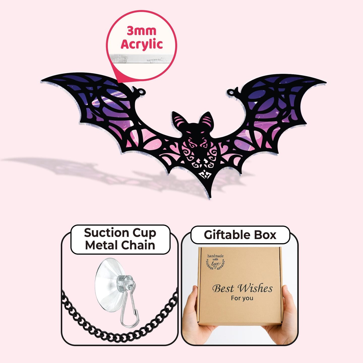 This bat suncatcher is expertly crafted using durable acrylic. The vibrant bat-themed design is printed using advanced UV technology for exceptional color and clarity. The acrylic layer adds an elegant, glossy finish to the piece.