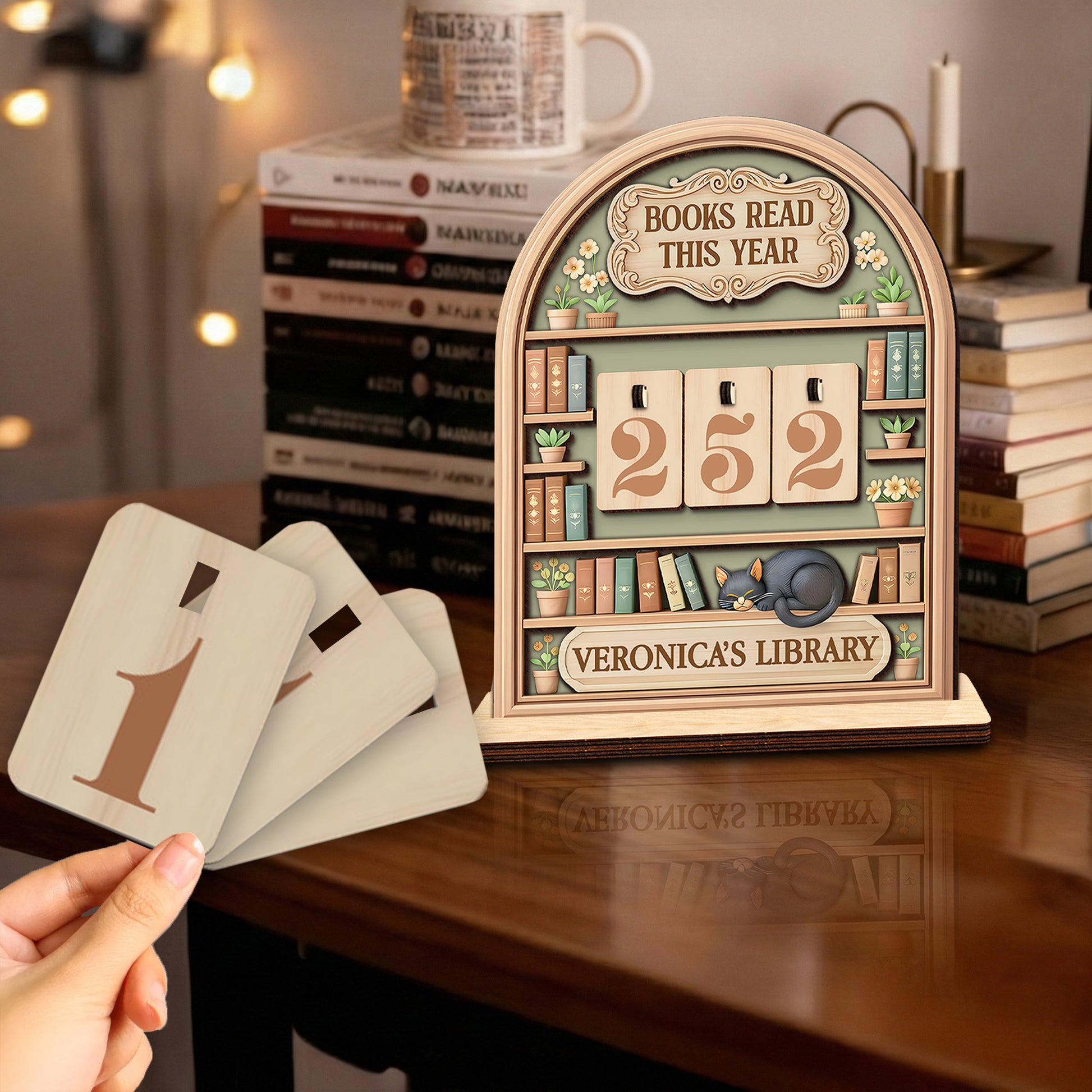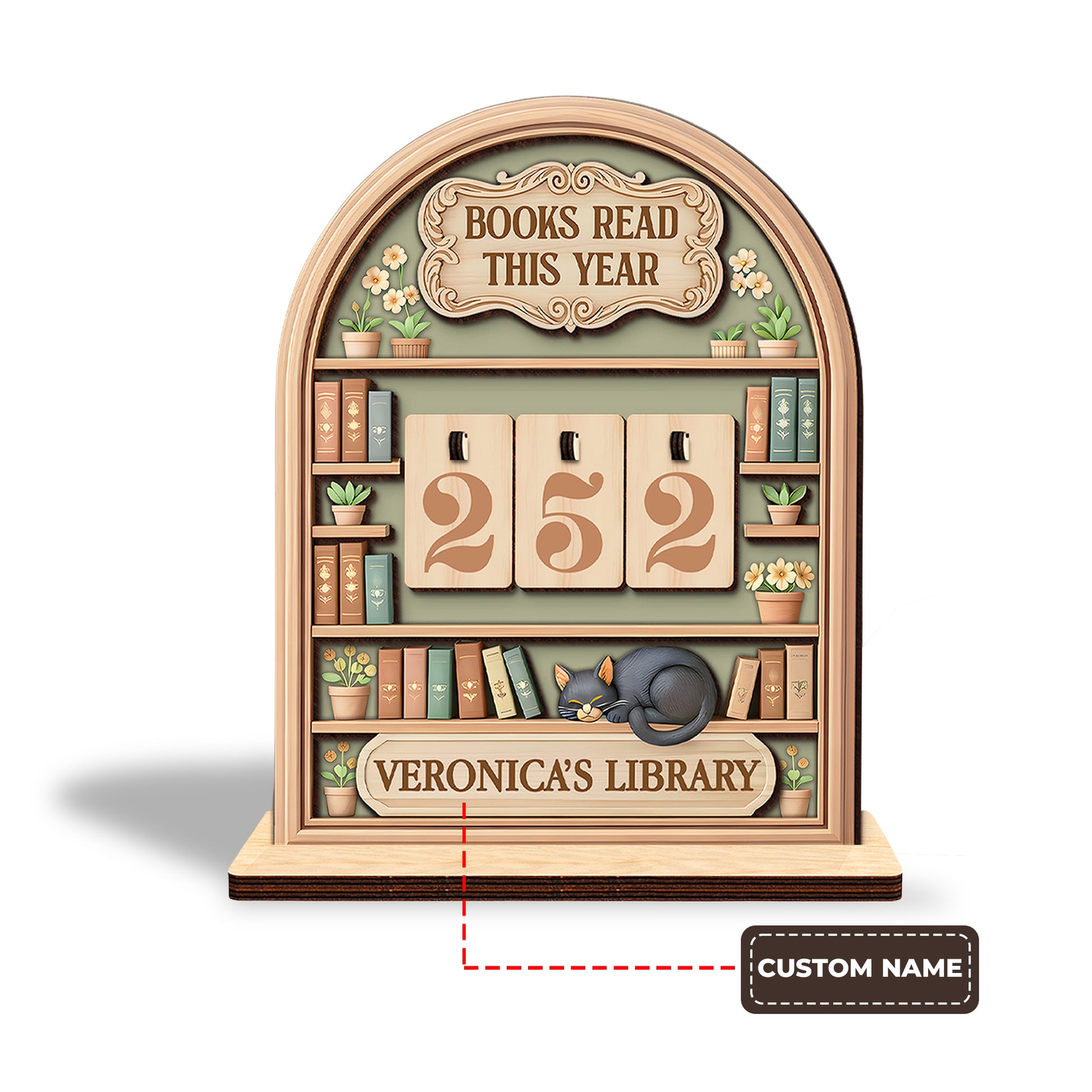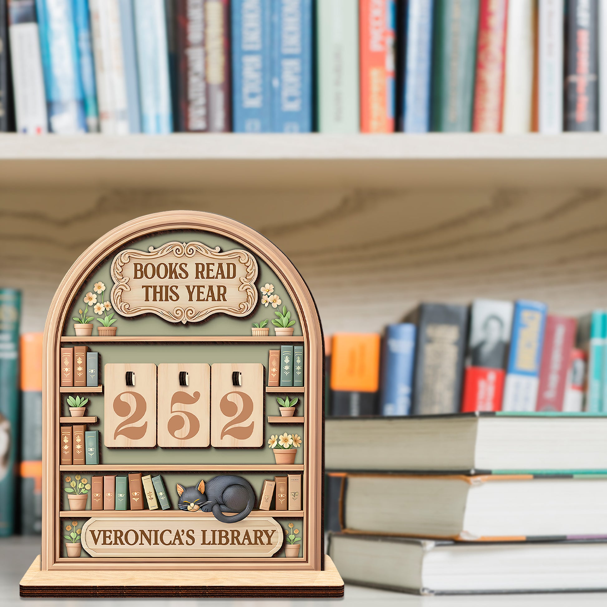 Personalized Book Tracker Sign, Sleeping Cat & Plants, Cozy Library Decor
