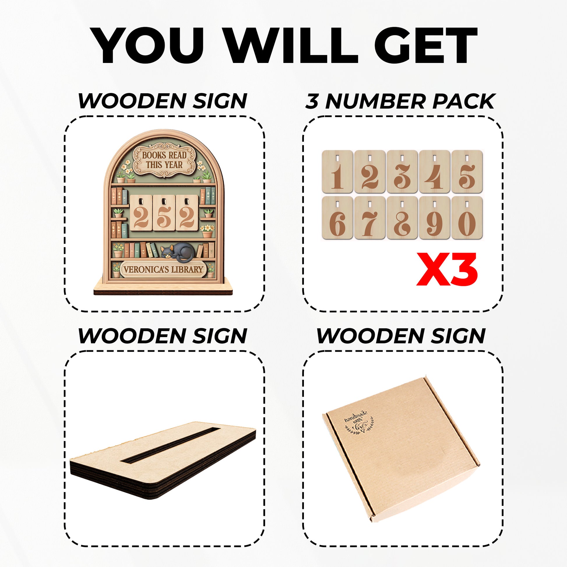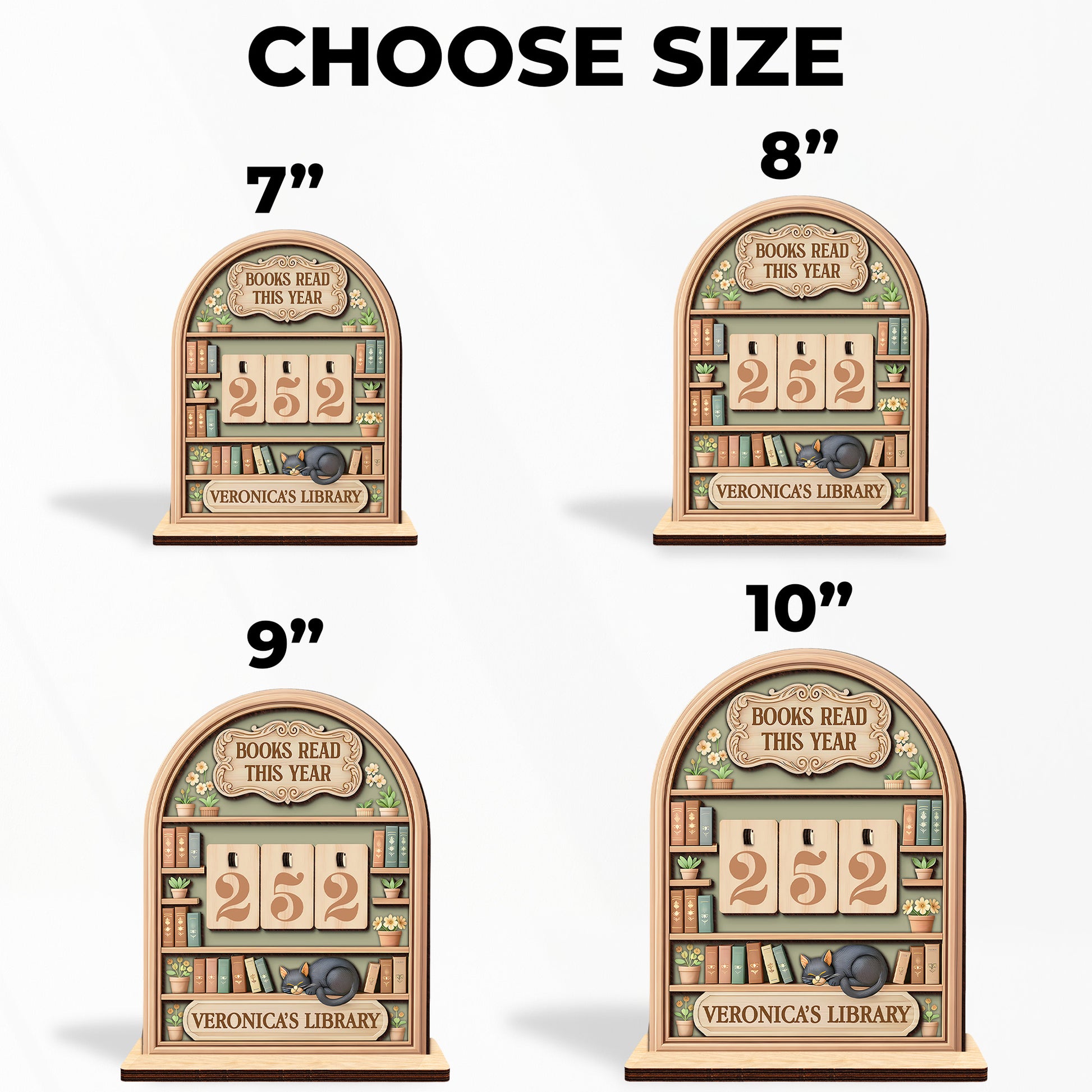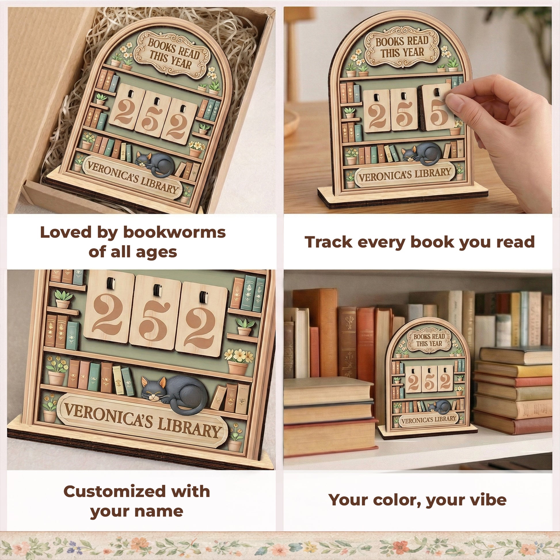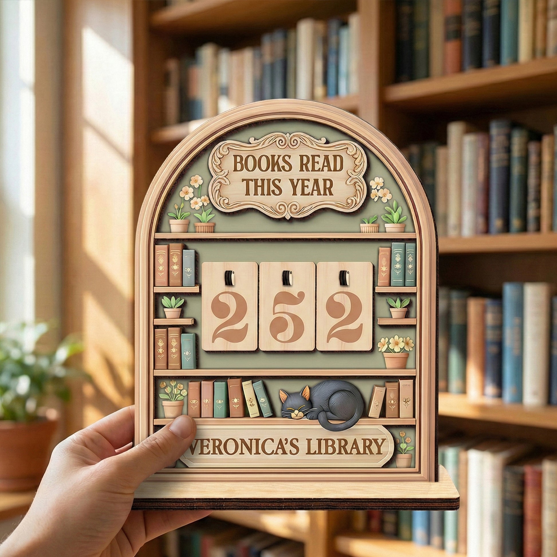 Personalized Book Tracker Sign, Sleeping Cat & Plants, Cozy Library Decor