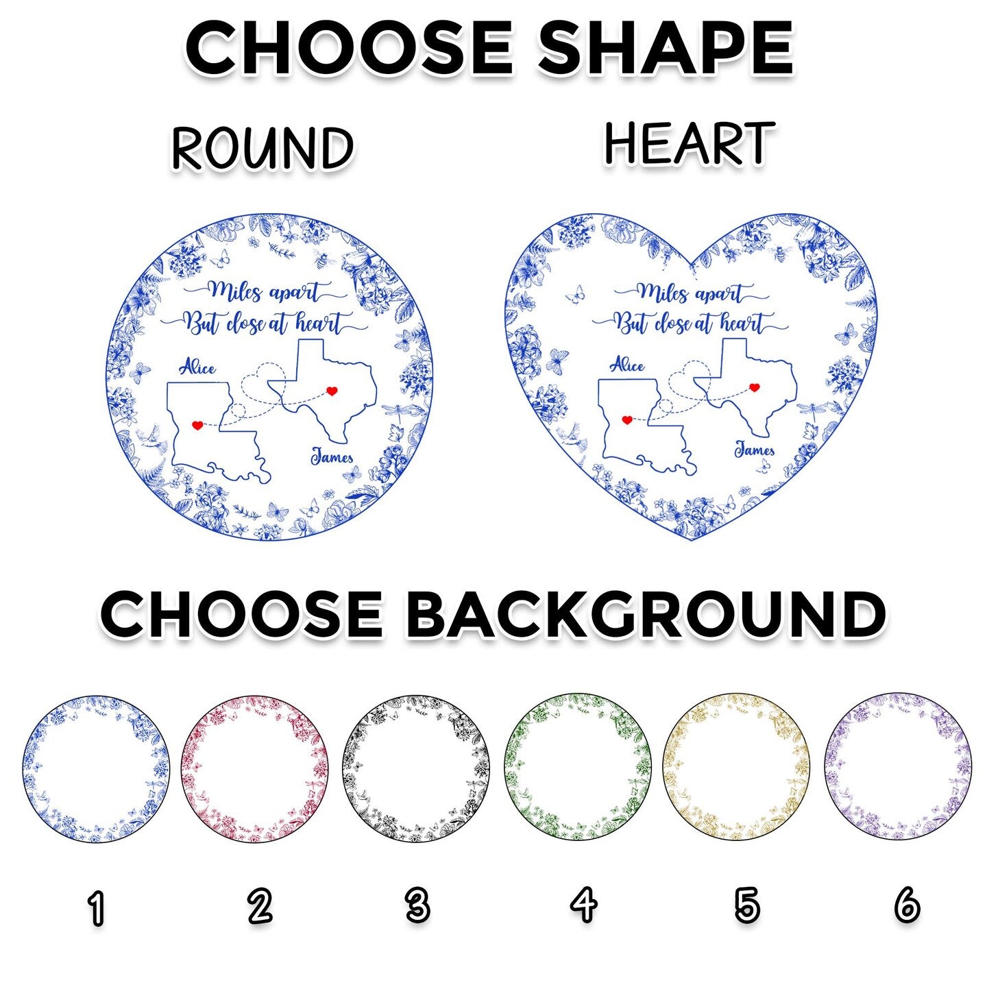 - Custom States or Countries – Choose any two states or countries to represent where you and your loved one live, making it truly unique.
