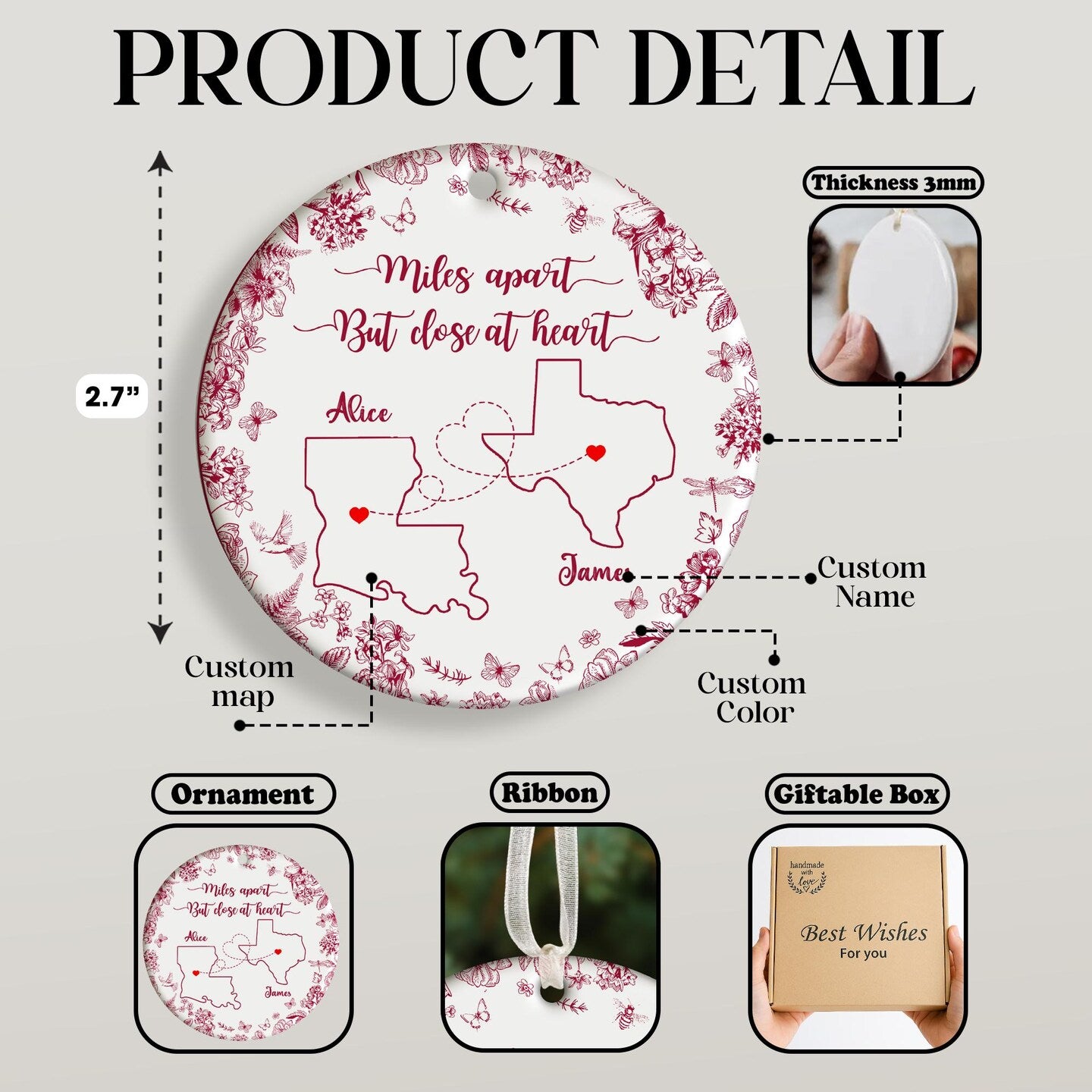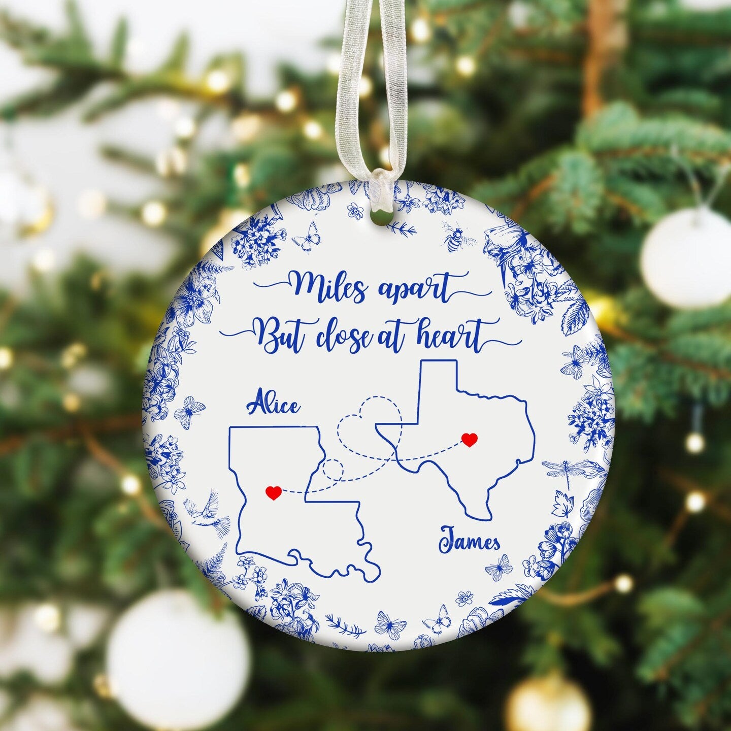 "Long Distance Gift,Custom State To State Map Ornament,Family Distance Ornament,Best Friend Christmas Gift,2025 Couple Keepsake,Moving Gift For Family