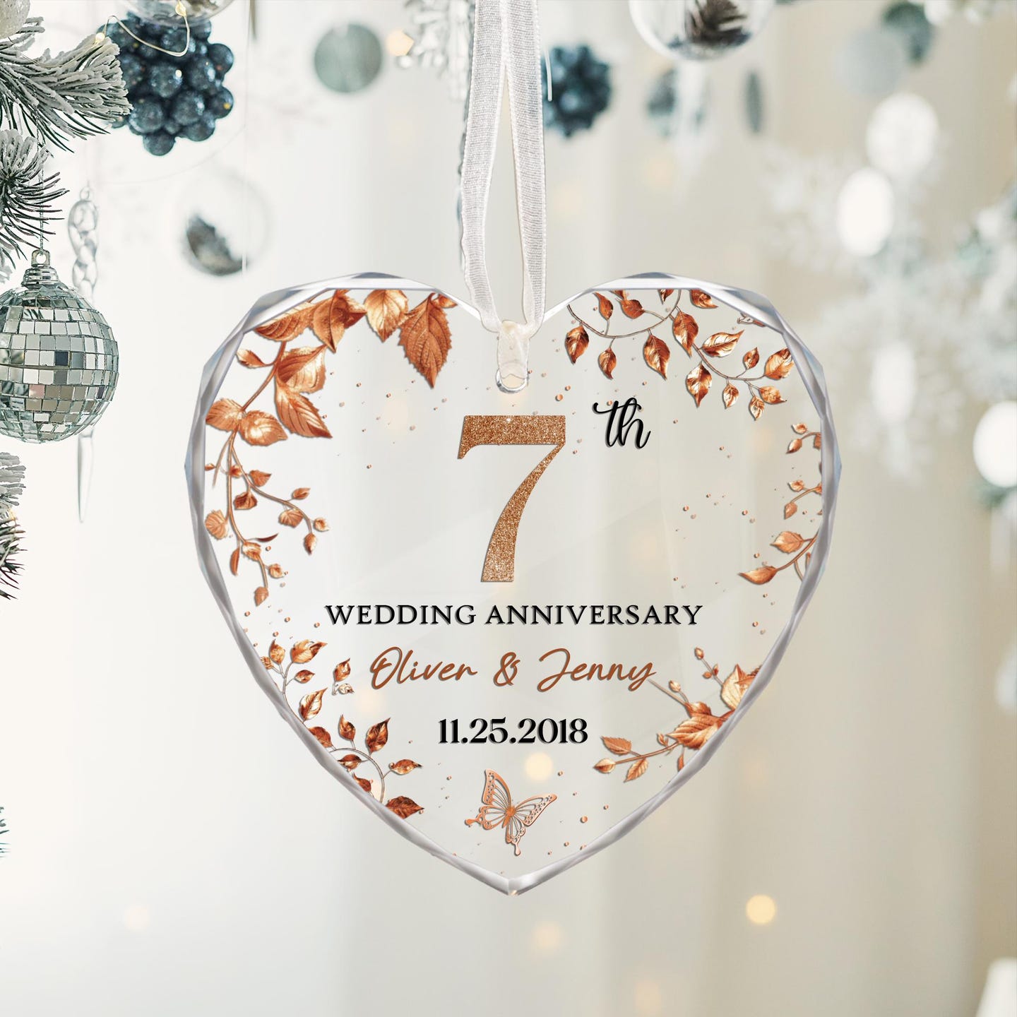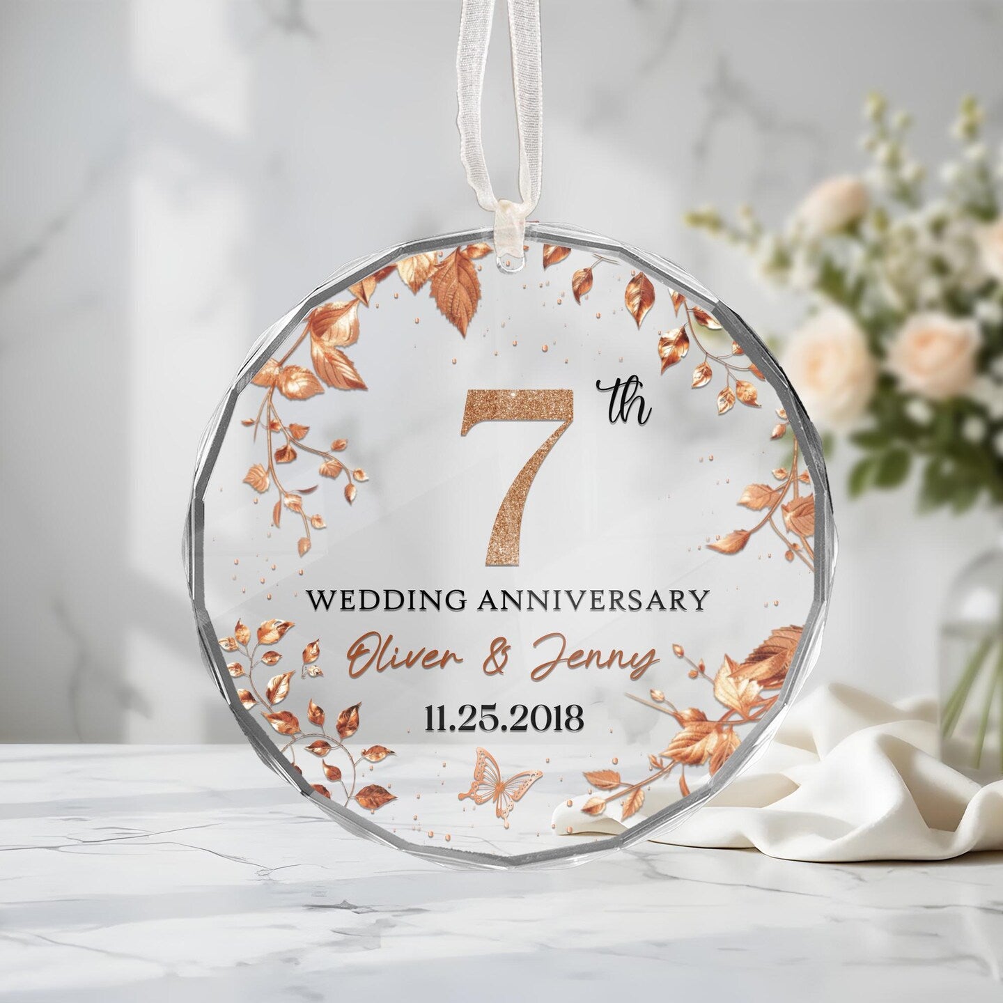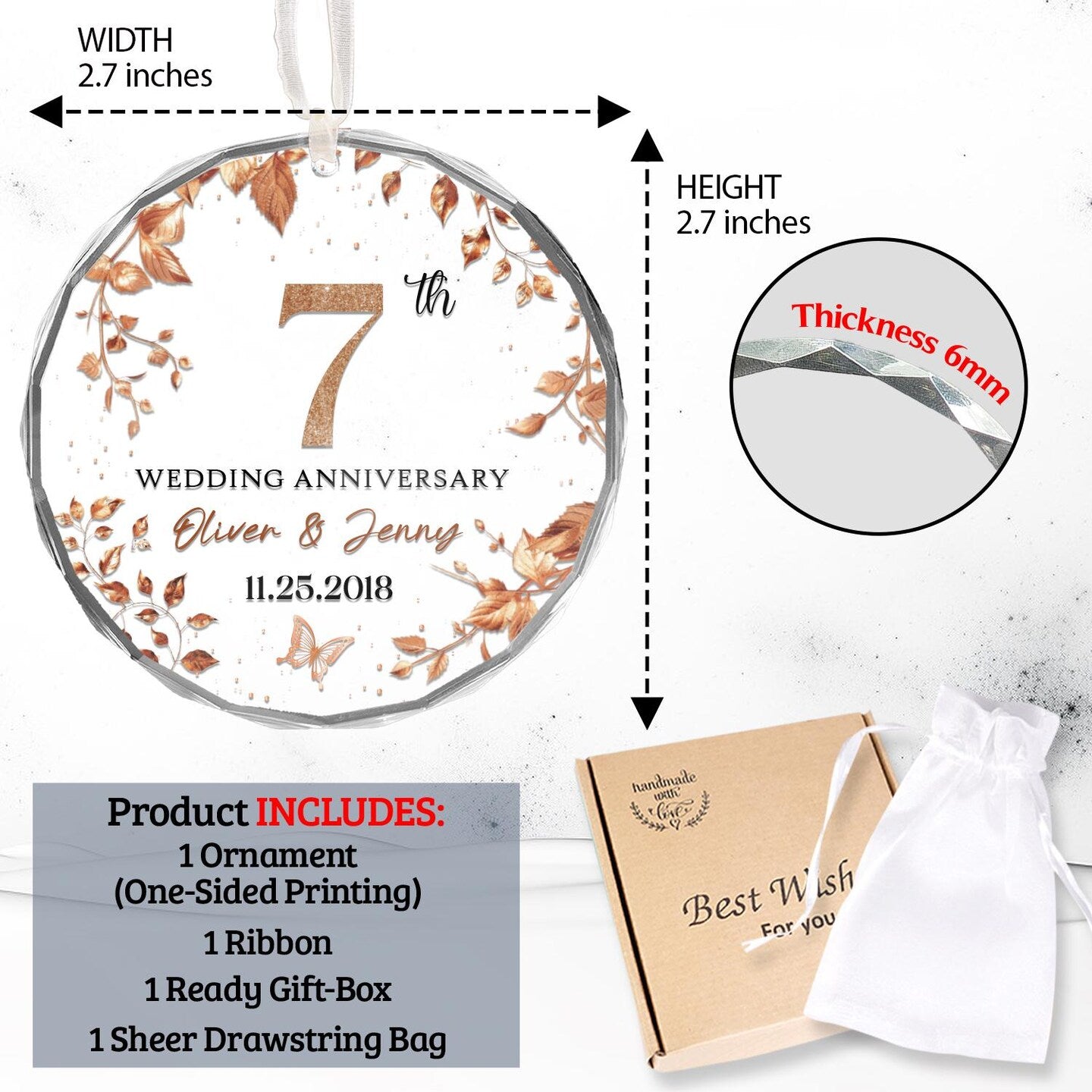 Personalized 7th Anniversary Gift, Copper Anniversary Glass Ornament, Wool Anniversary Gift, Wedding Gift for Couple, Gift for Husband Wife