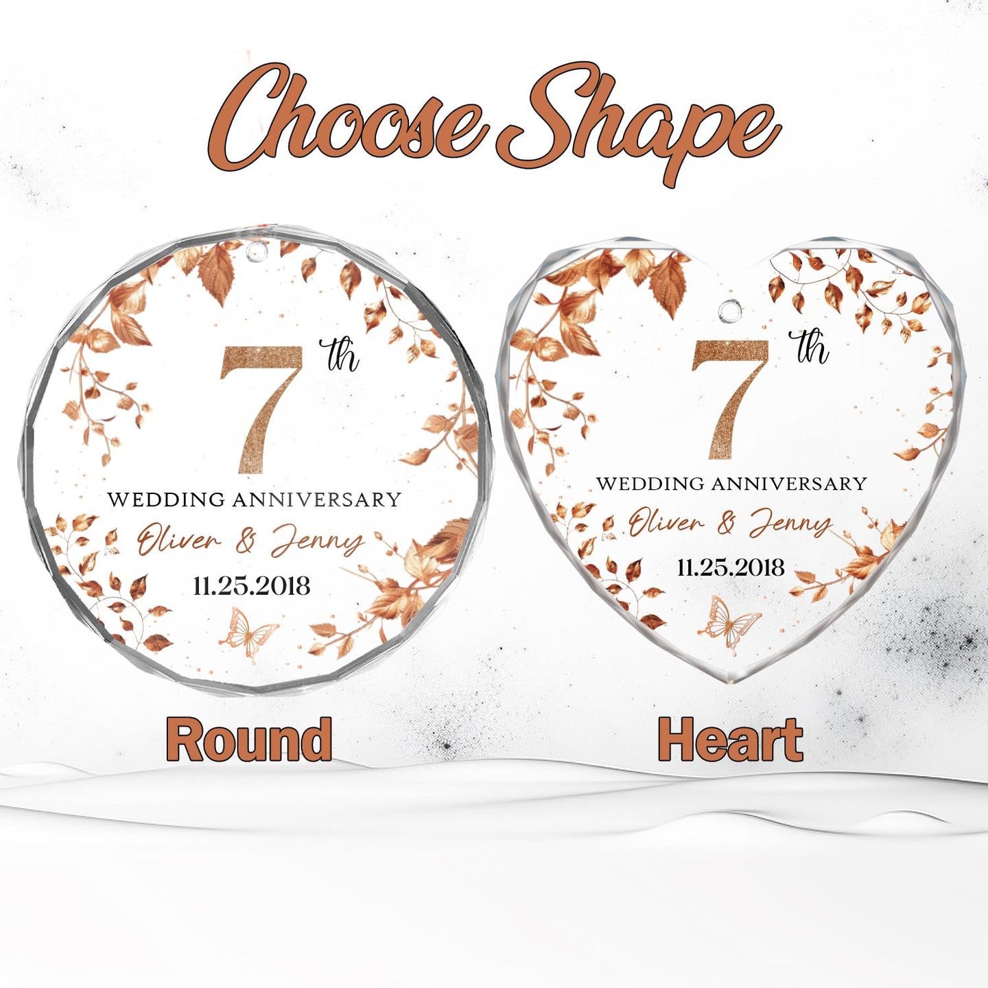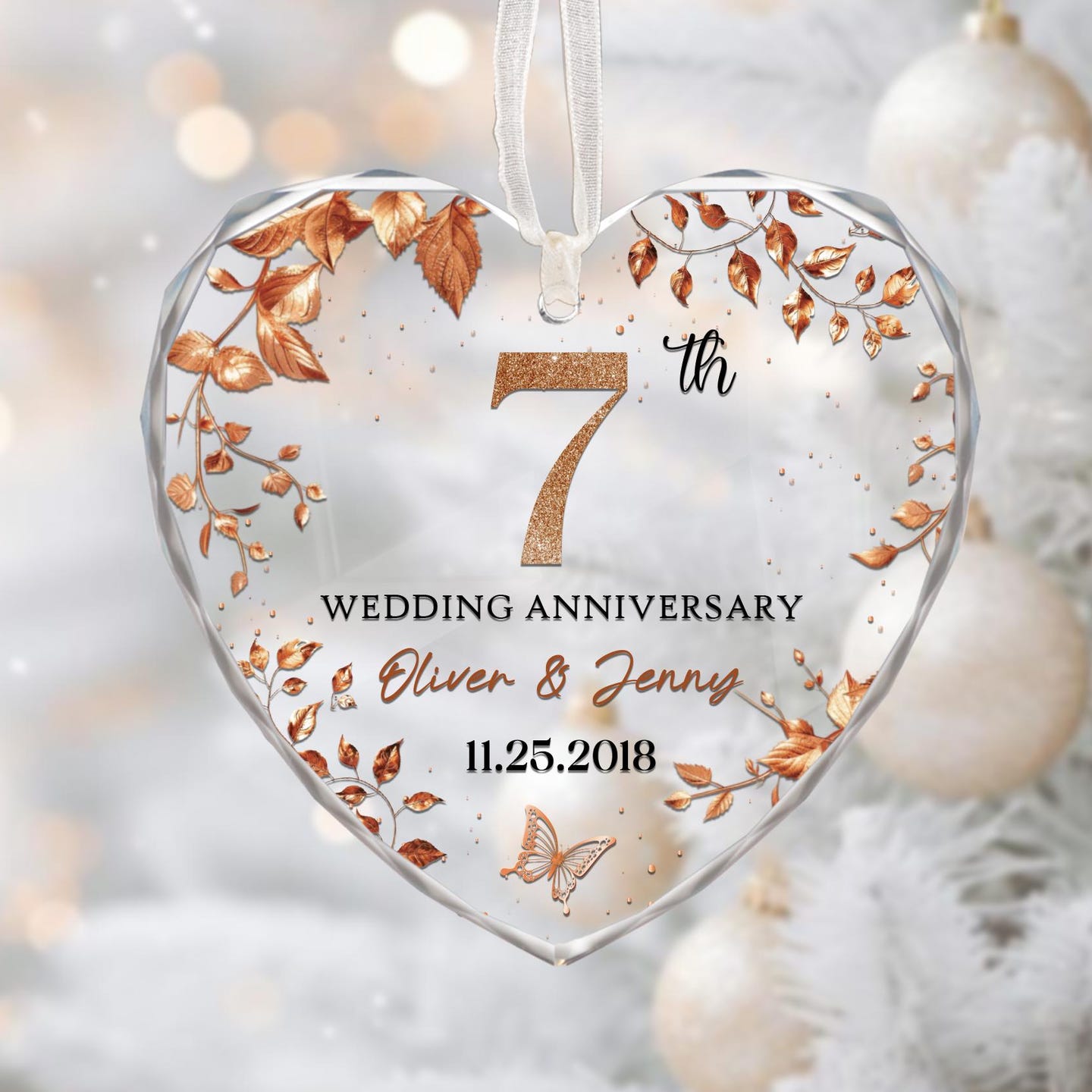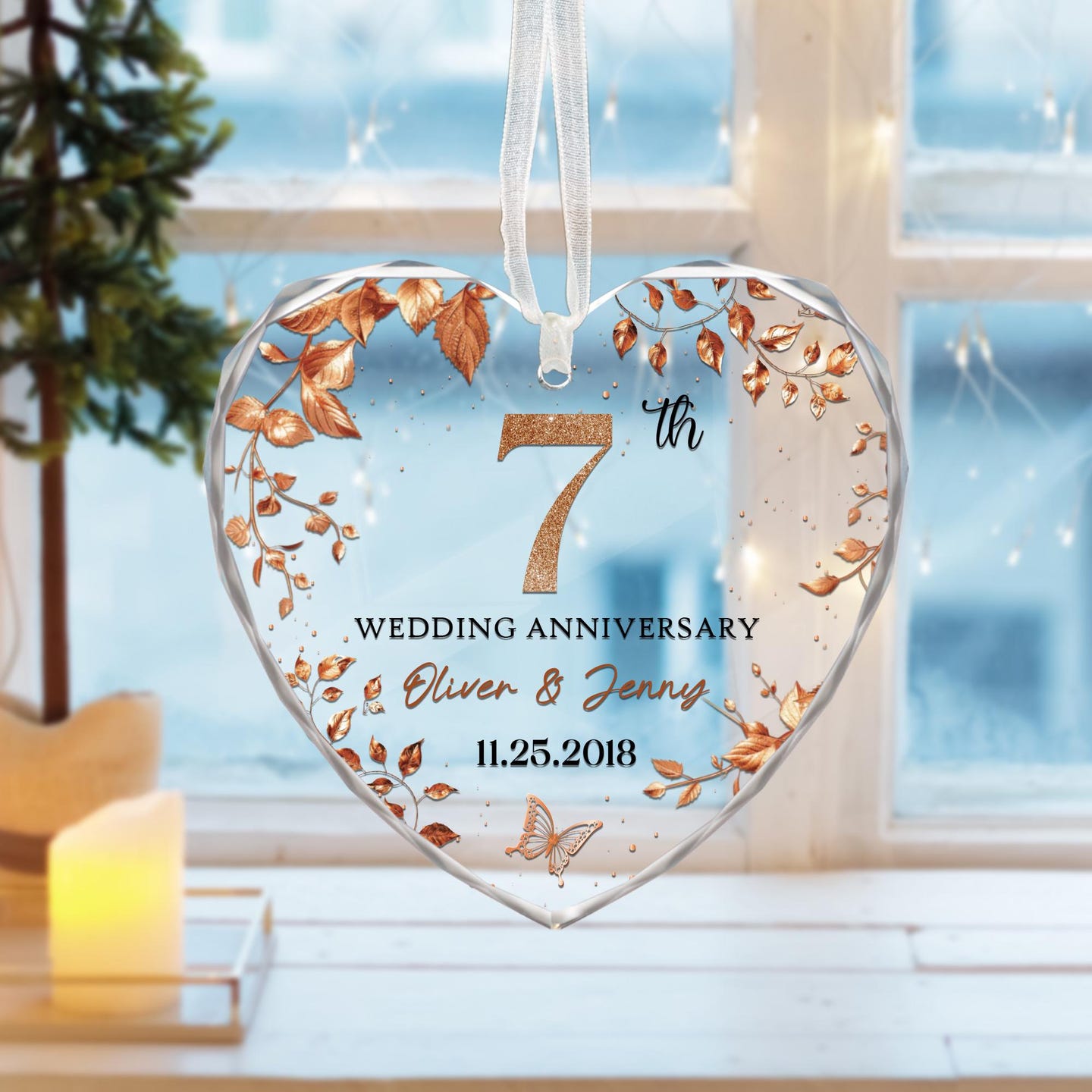 Personalized 7th Anniversary Gift, Copper Anniversary Glass Ornament, Wool Anniversary Gift, Wedding Gift for Couple, Gift for Husband Wife