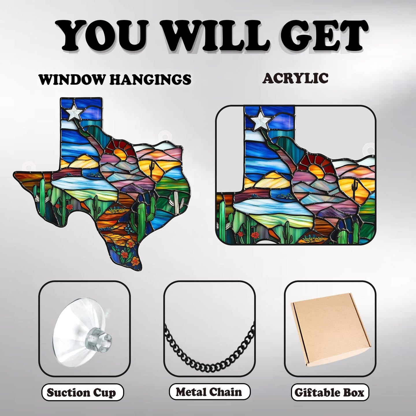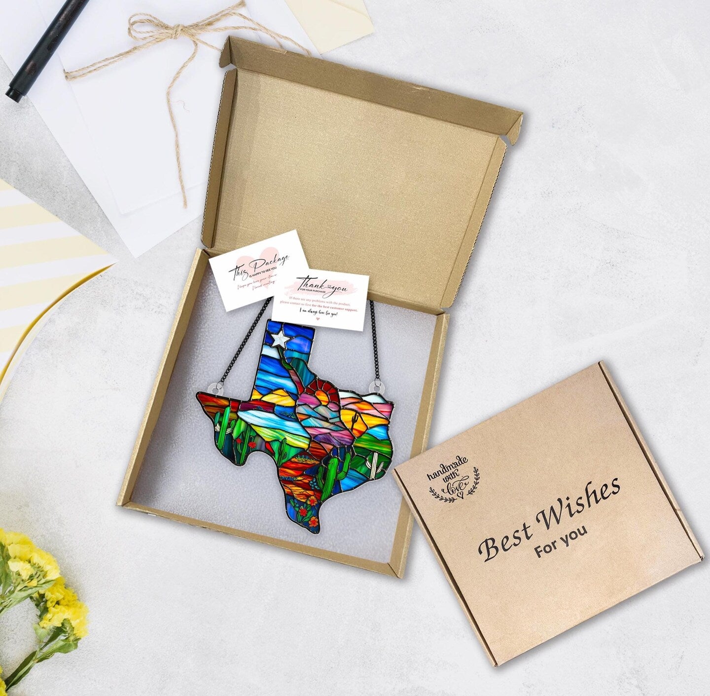 This stained glass-style sun catcher makes a perfect gift for proud Texans and anyone who holds Texas close to their heart. Whether you're celebrating a housewarming, birthday, holiday, or simply want to share a thoughtful surprise, this piece is a meaningful way to show you care. It's especially perfect for those who miss home or want to keep a piece of Texas with them, wherever they are. With its striking design and vibrant colors, it’s not just decor—it’s a heartfelt tribute to the Lone Star State.