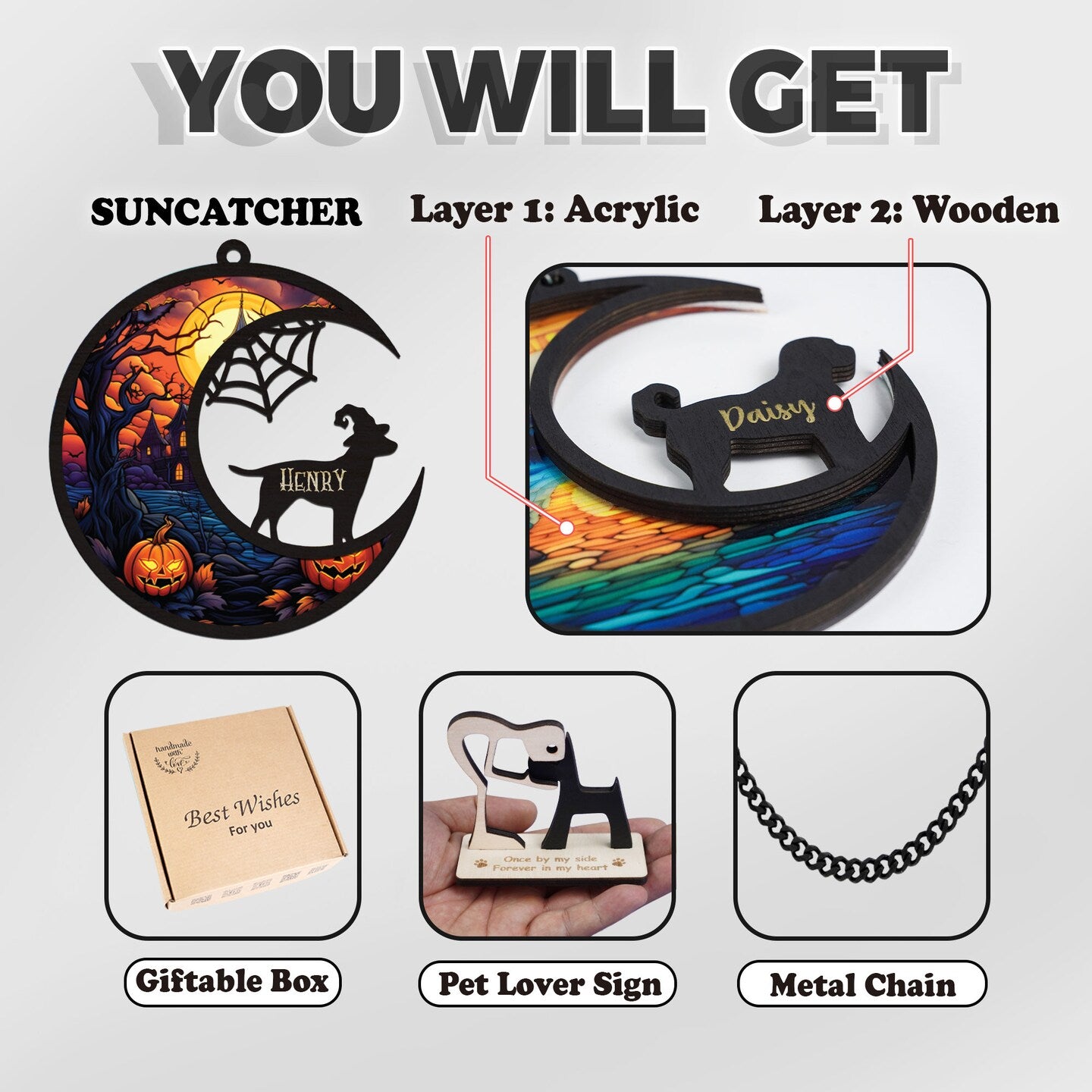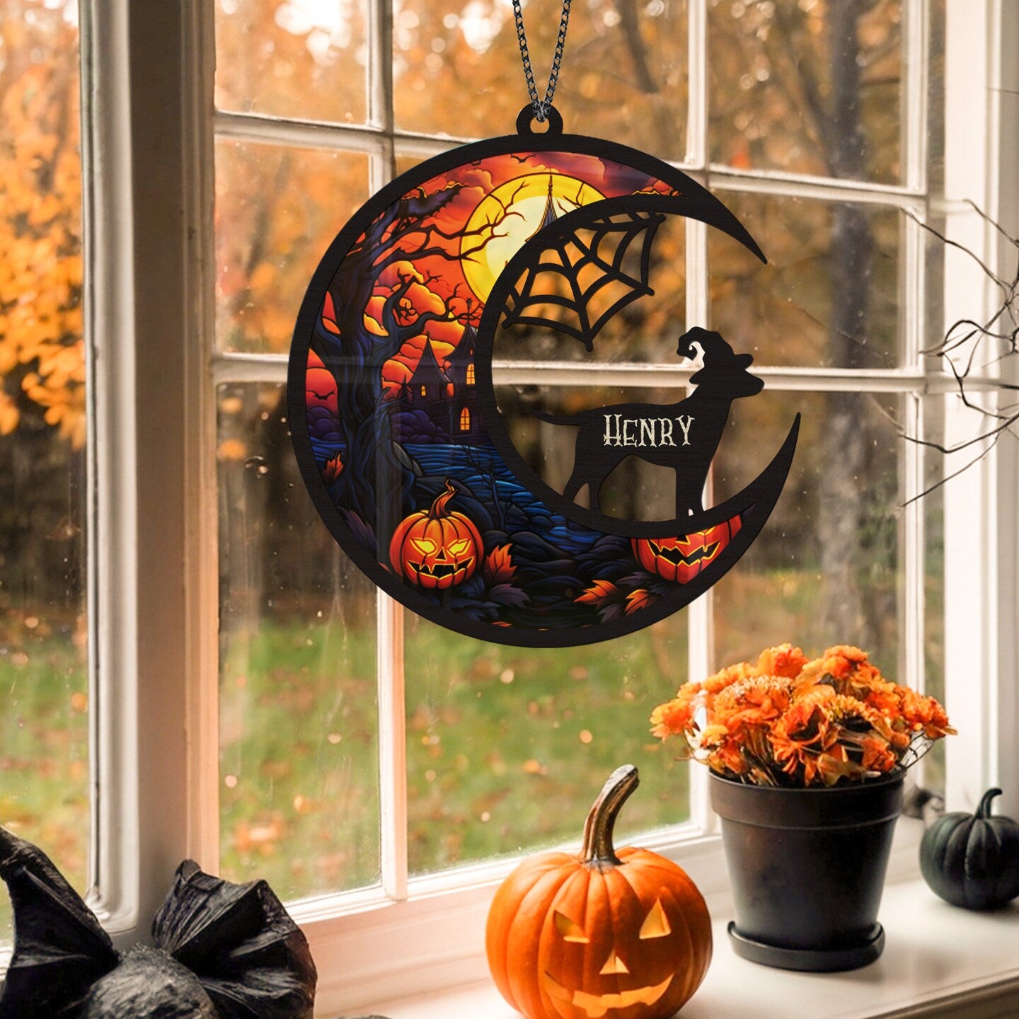 Dog Memorial Suncatcher, Spooky Dog Halloween Fall Window Decor, Hallowen Dog Gift, Cat Lovers Gift, Dog Ornament Dog Remembrance Gifts