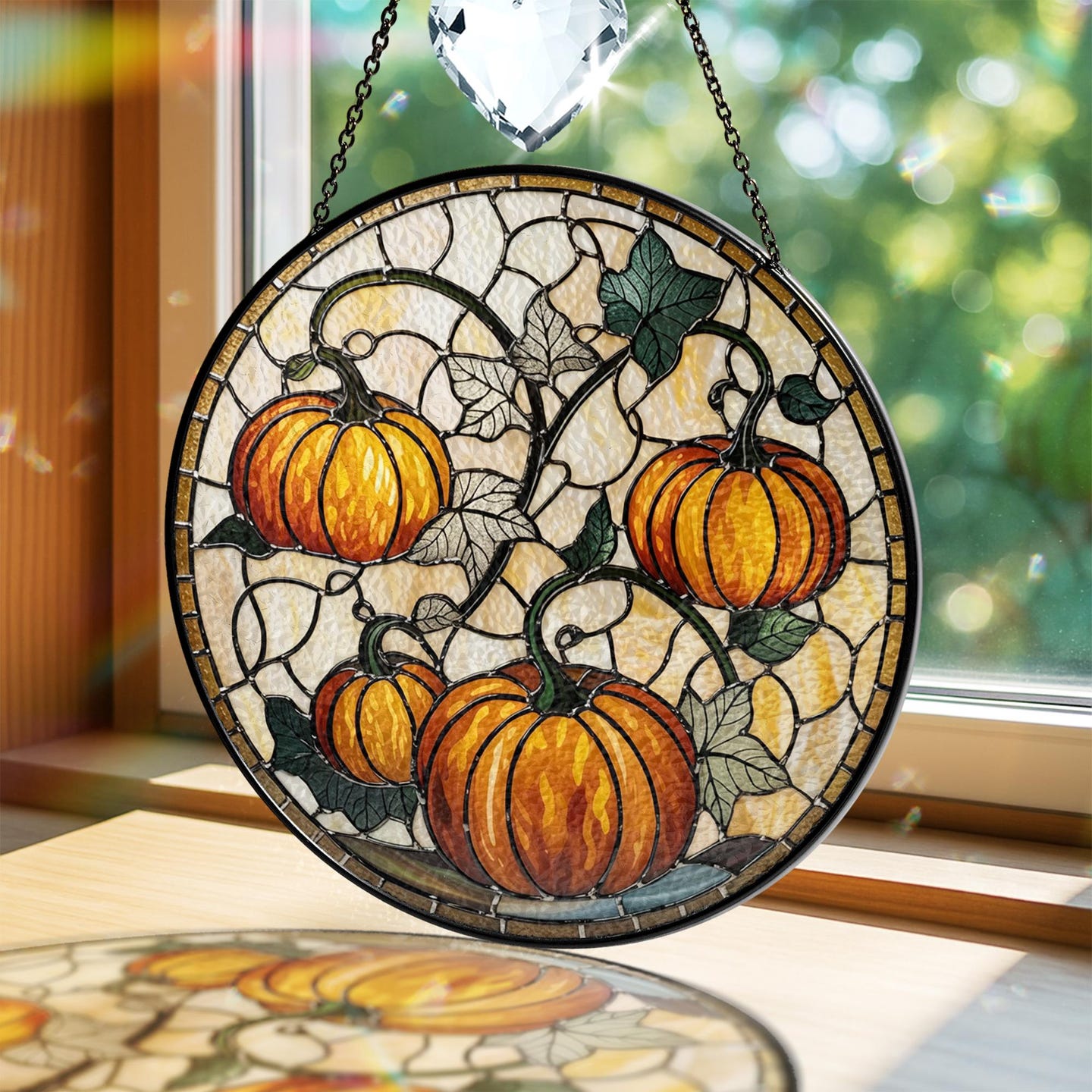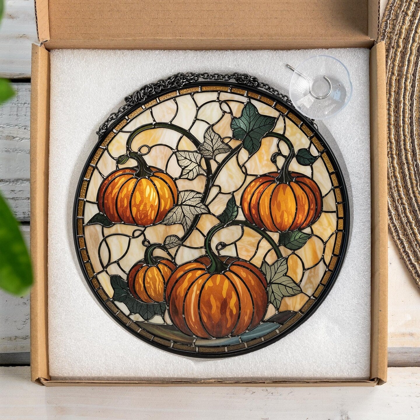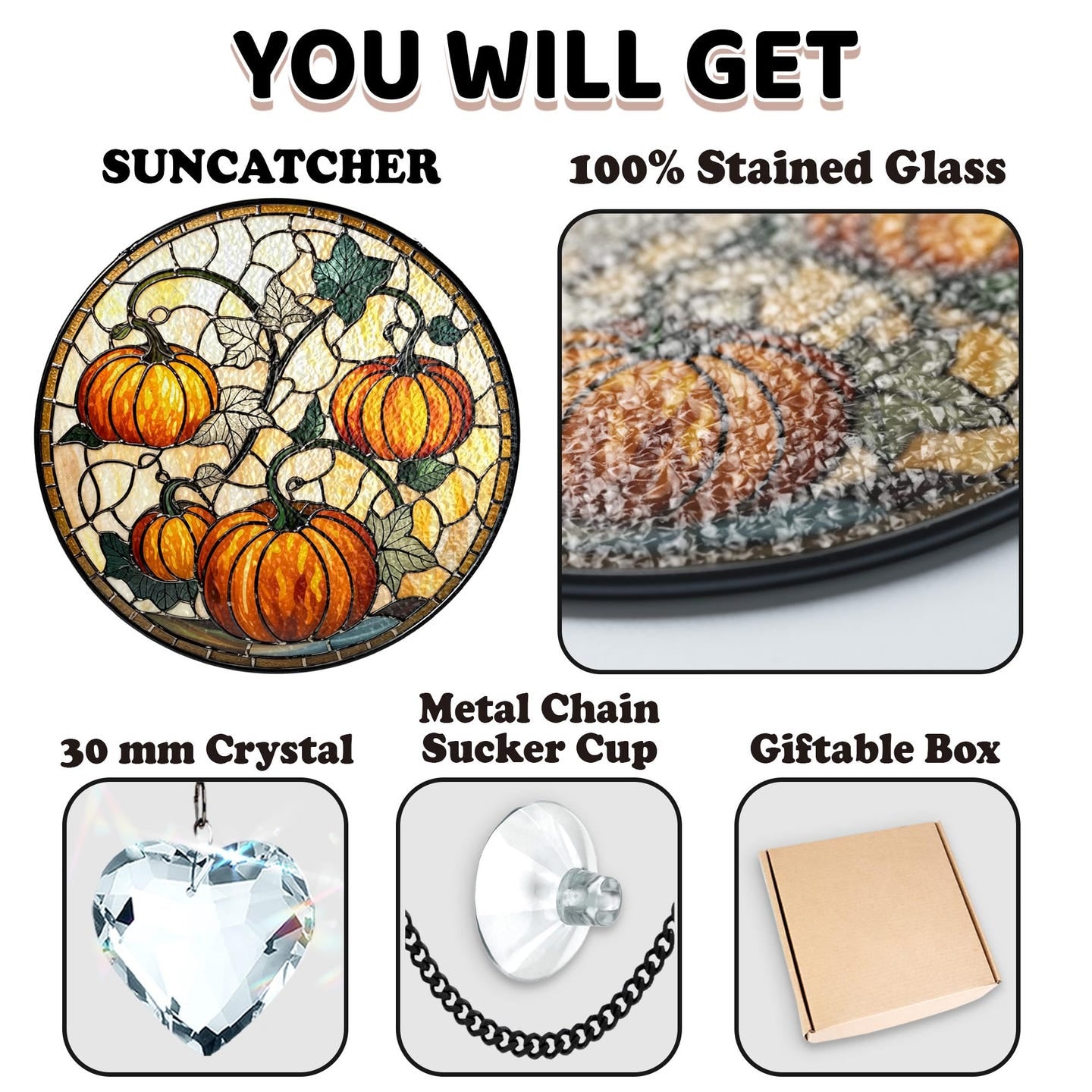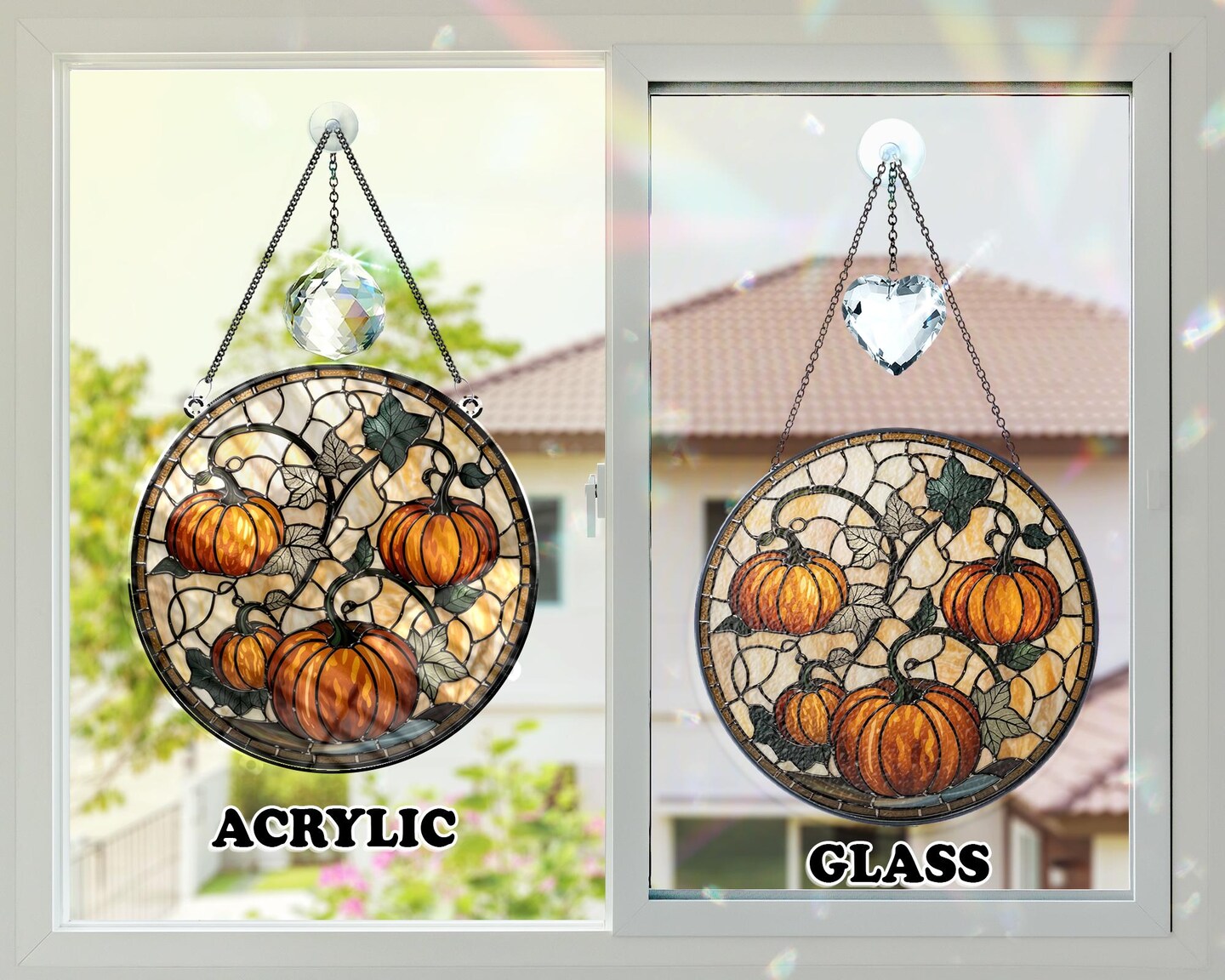 - 1 pumkin suncatcher with metal chain and suction cup for easy hanging