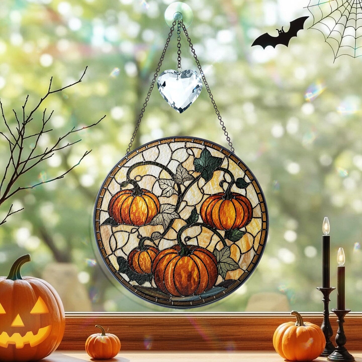 Bring spooky charm and cozy autumn vibes to your home with this handmade Pumpkin Stained Glass Suncatcher. Designed with rich fall colors and rustic details, it makes the perfect Halloween window decor or a thoughtful gift for the season. Hang it in your window to catch the sunlight and watch the colors glow – a festive touch for October, Halloween, and Thanksgiving!